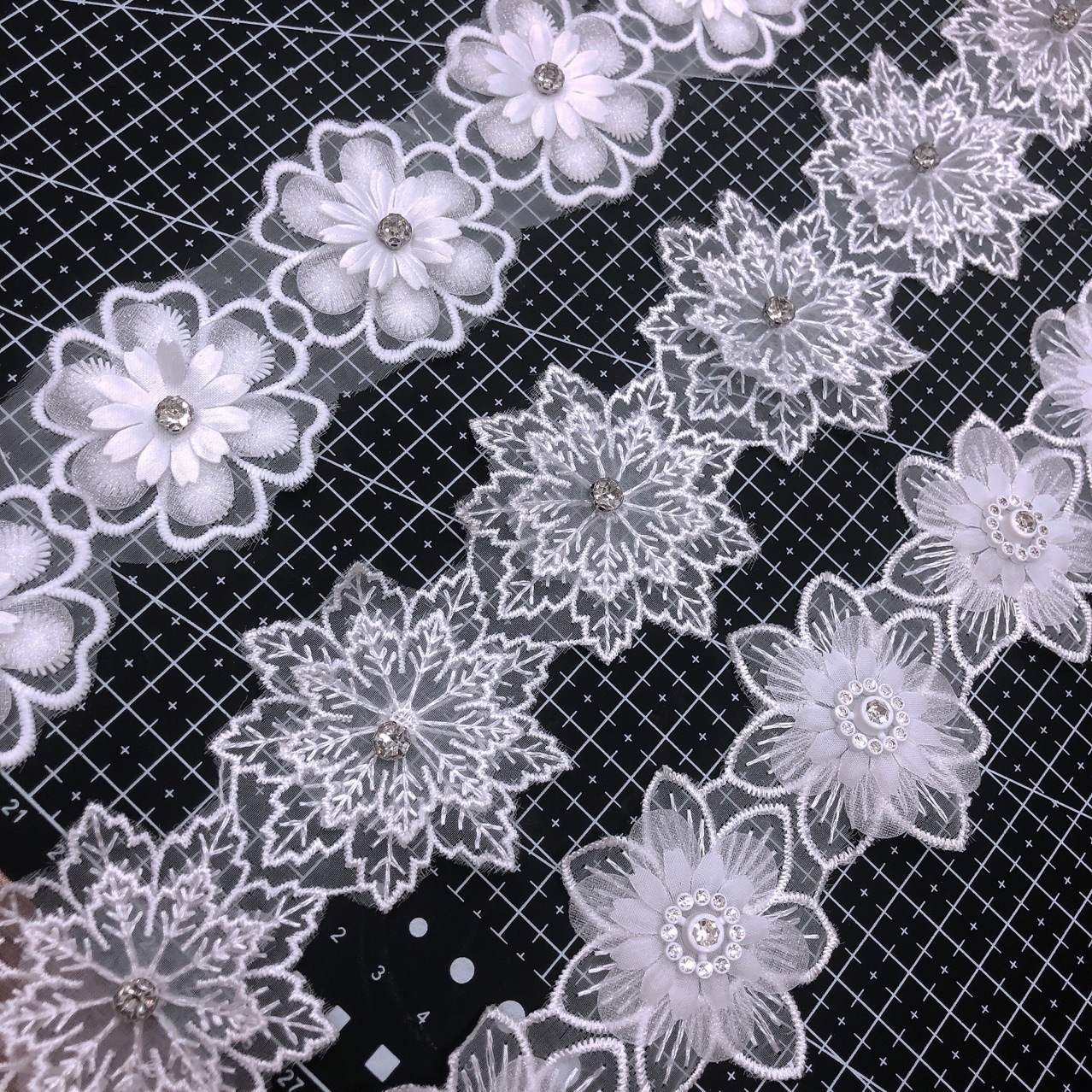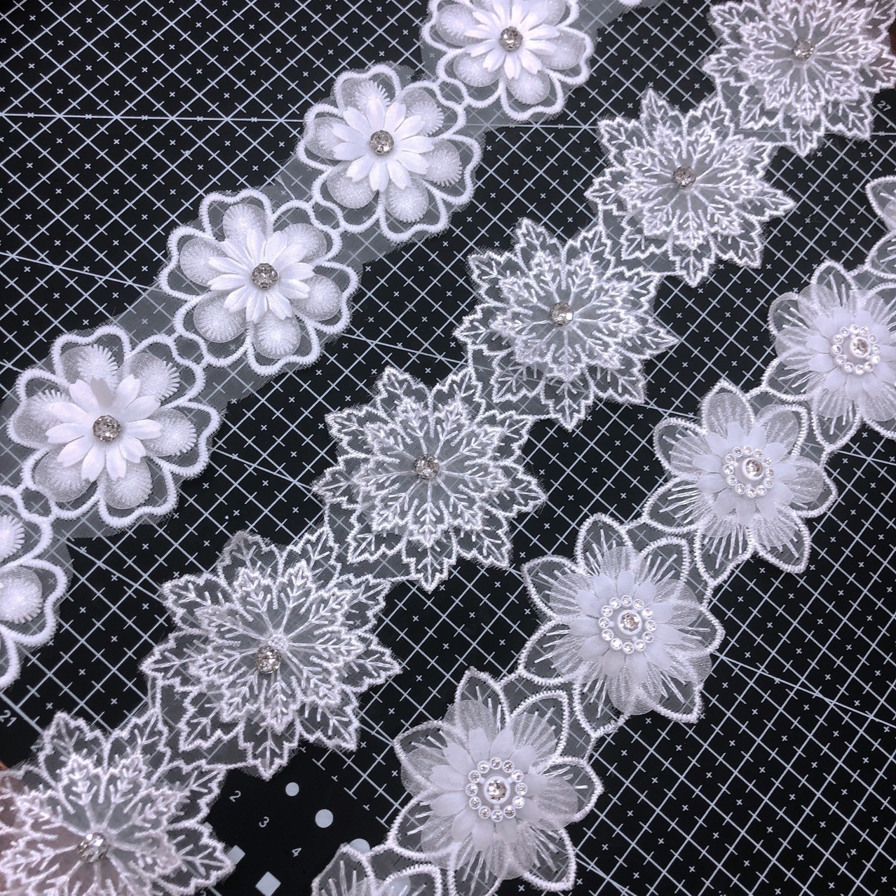 폴리 에스테르 실크 메쉬 자수 레이스 다층 3 차원 네일 드릴 꽃 바코드 의류 아동 의류 원피스 장식 액세서리