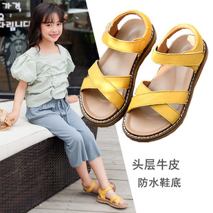 여자 여름 Baotou 샌들 공주 신발 아기 비치 신발 가죽 부드러운 단독 미끄럼 방지 캐주얼 통기성