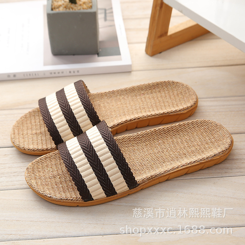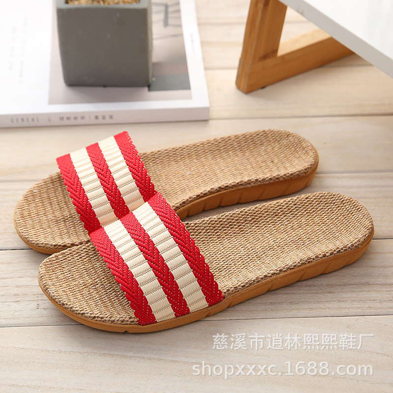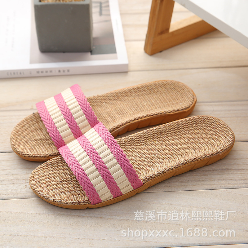 여름 2021 사계절 한 단어 하위 잔디 슬리퍼 플랫 바닥 홈 실내 도매면 및 린넨 슬리퍼 여성용 린넨 실내 겨울스토어 가기