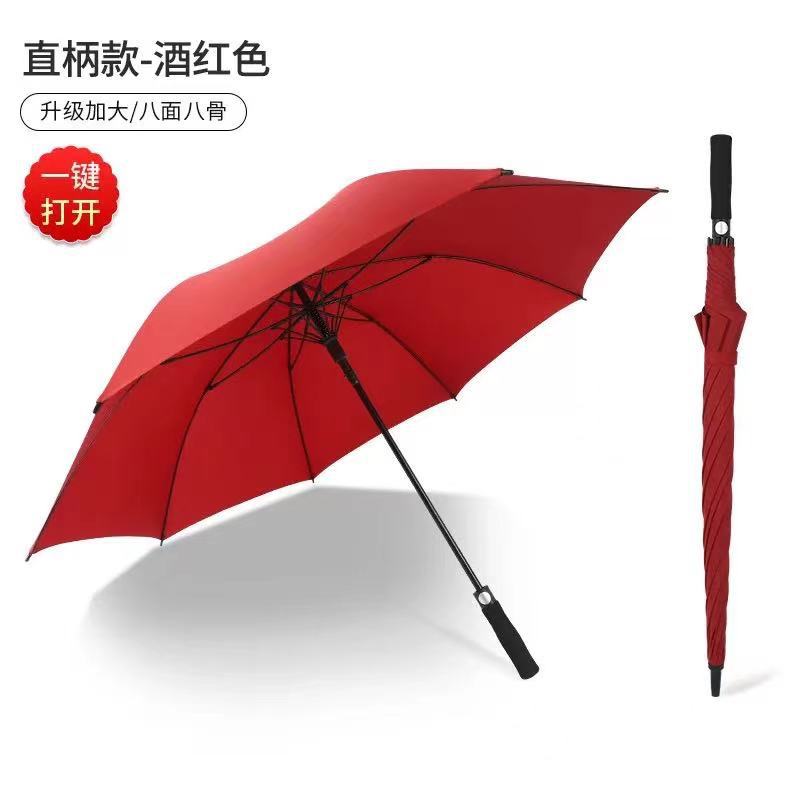 우산 맞춤 로고 긴 손잡이 직선형 자동 우산 골프 남성 비즈니스 우산 블랙 글로시 자외선 차단 태양 우산