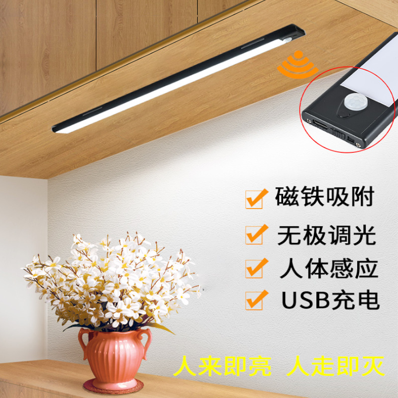 완전 발광 LED 핸드 스윕 인체 유도 램프 배선 프리 자기 캐비닛 램프 USB 충전 긴 야간 조명