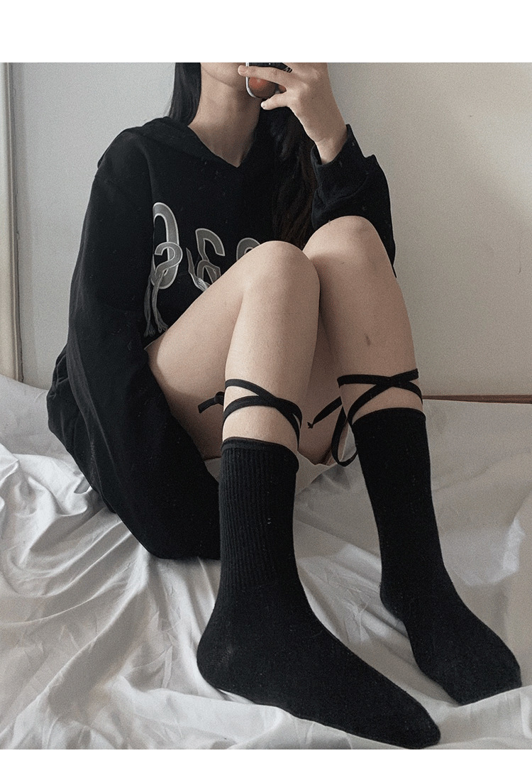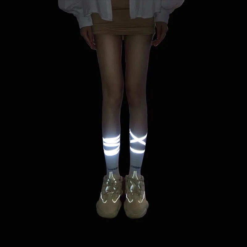 크로스 블랙 레깅스 양말 여성용 인스 스타일 중간 길이 양말 롱삭스 종아리 양말 면 나이트클럽 발광 레깅스 양말 트렌디스토어 가기