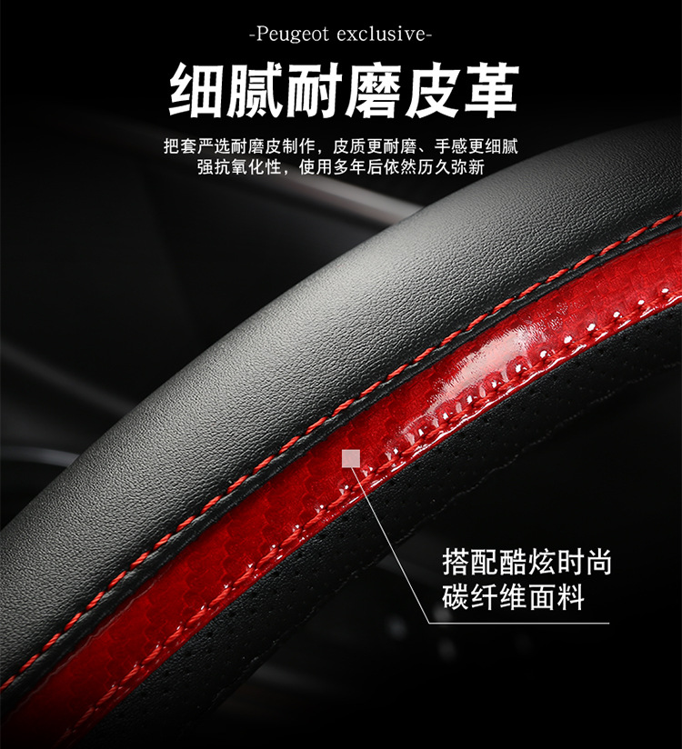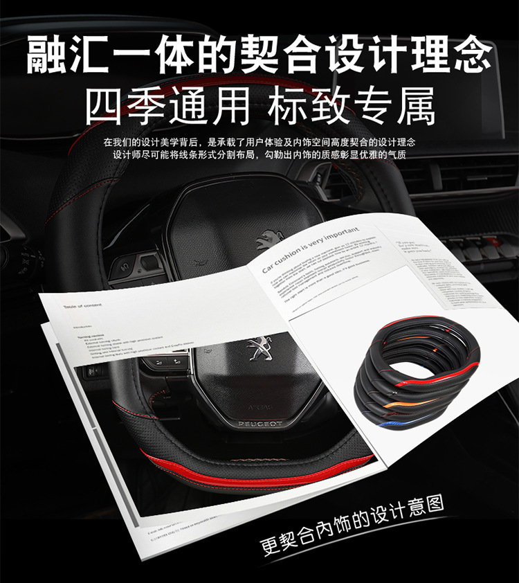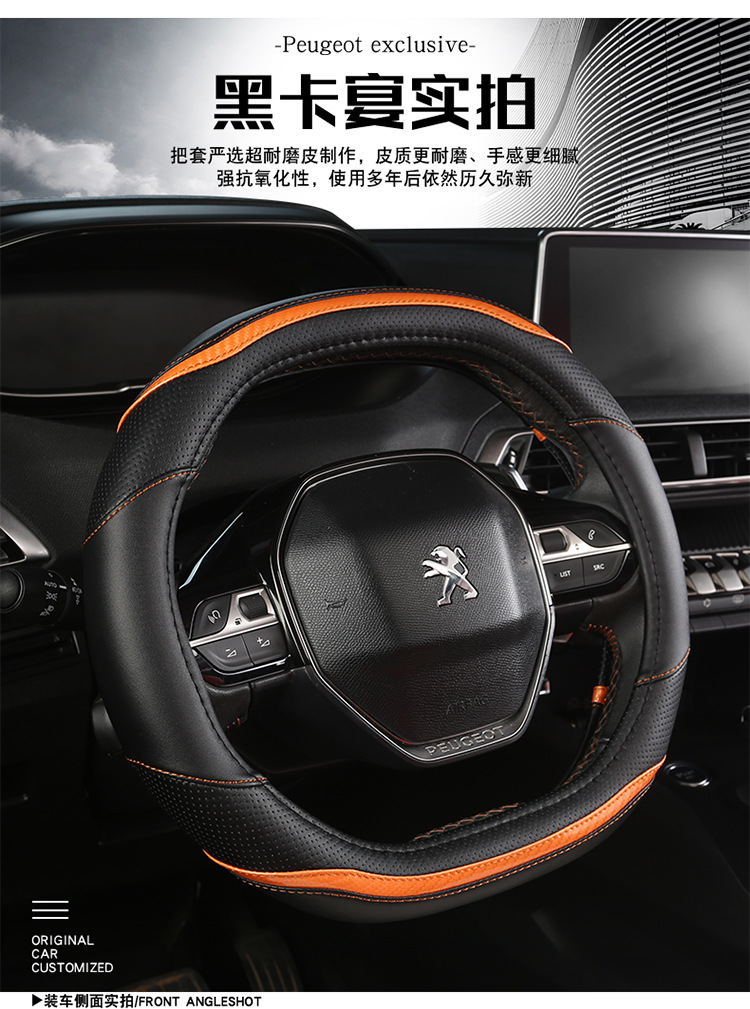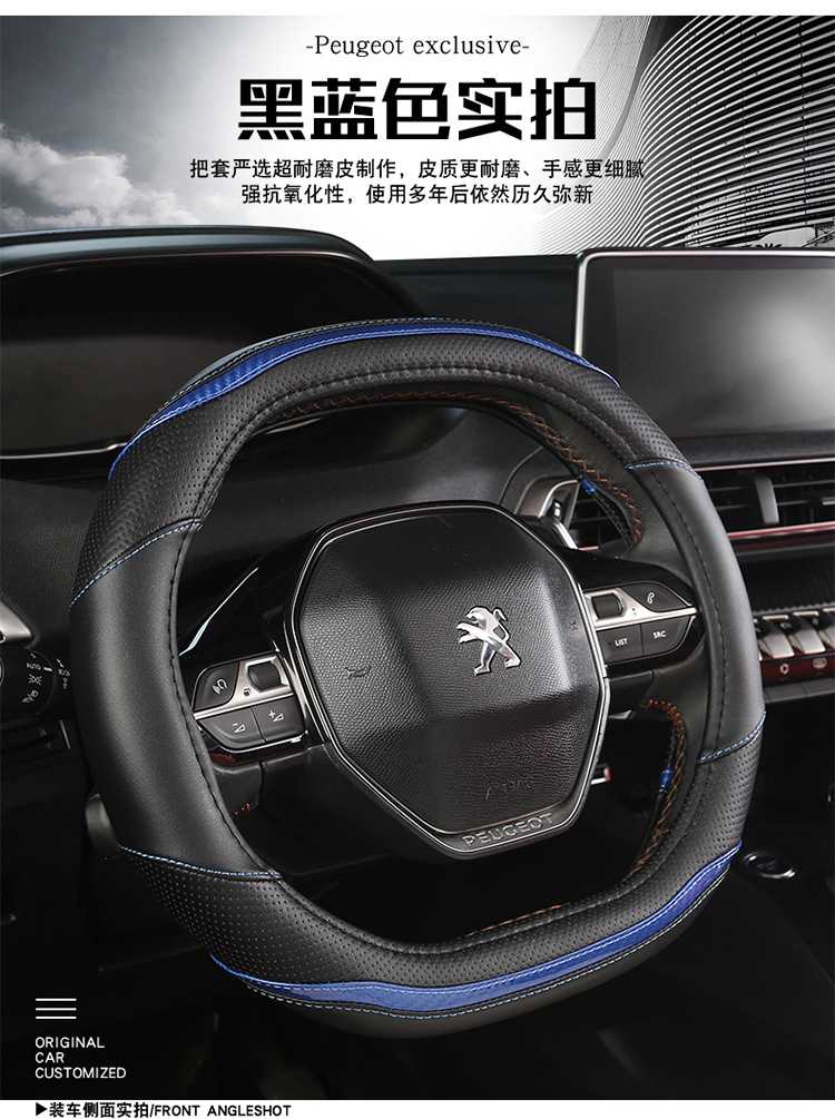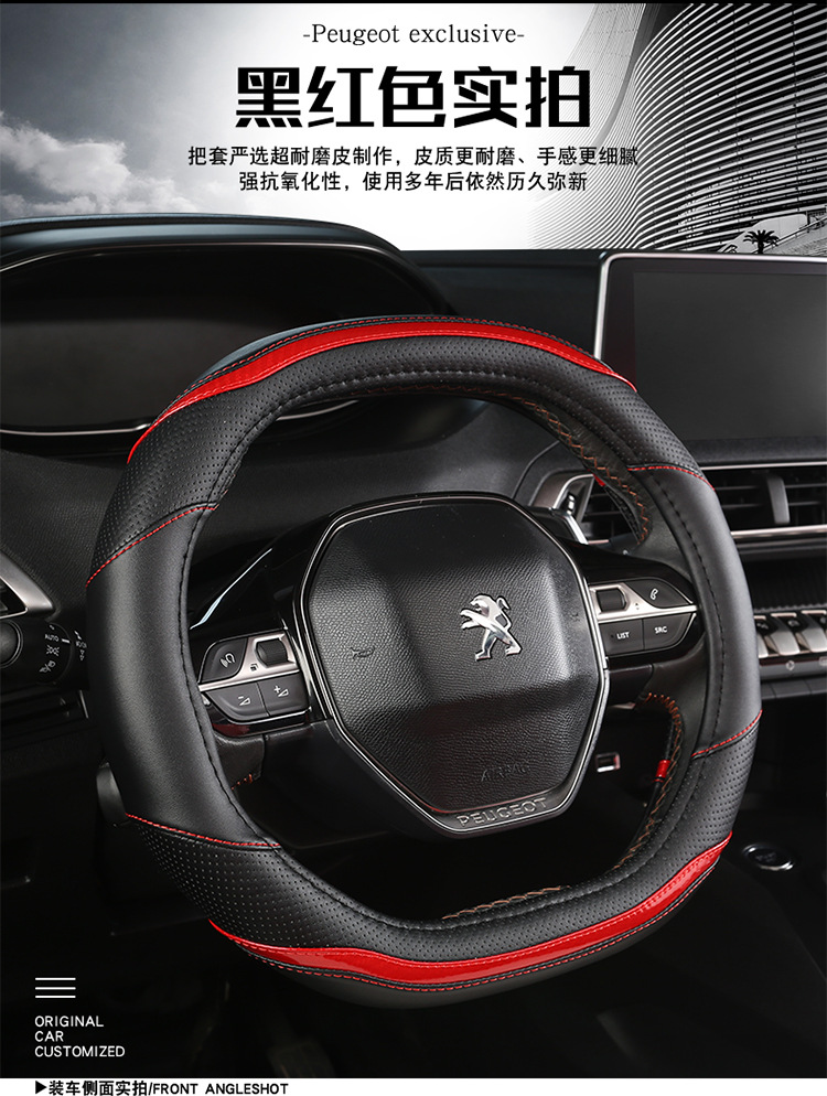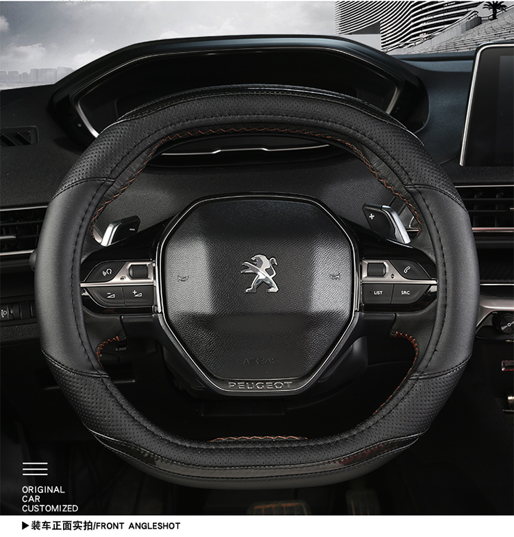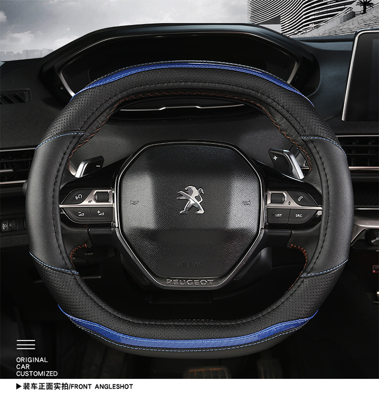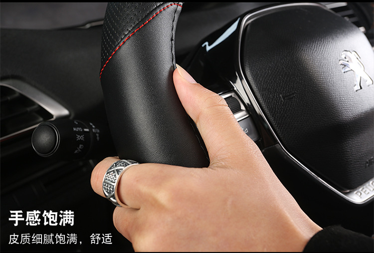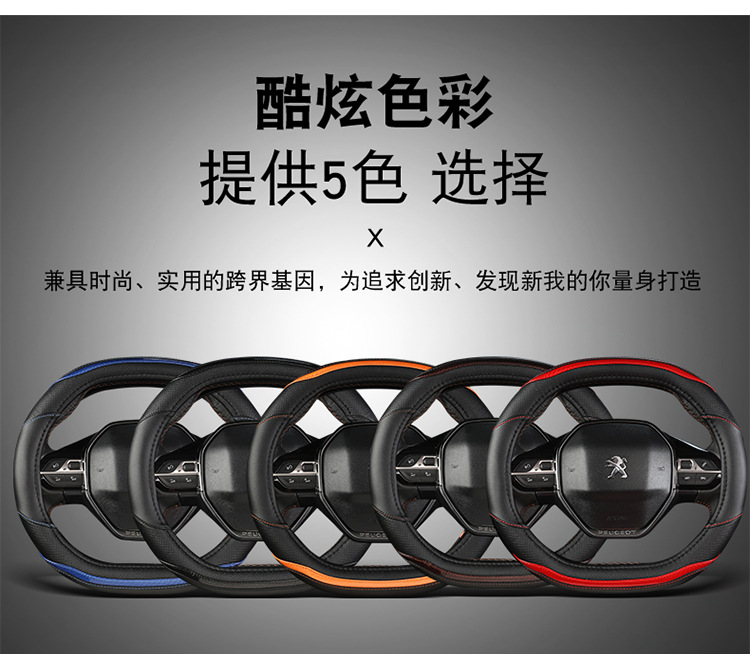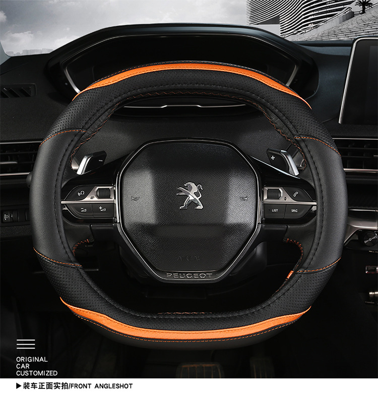 푸조 핸들 커버 뉴 307 308 301 로고 408 울트라 파이버 가죽 자동차 핸들 커버 사계절 스페셜스토어 가기
