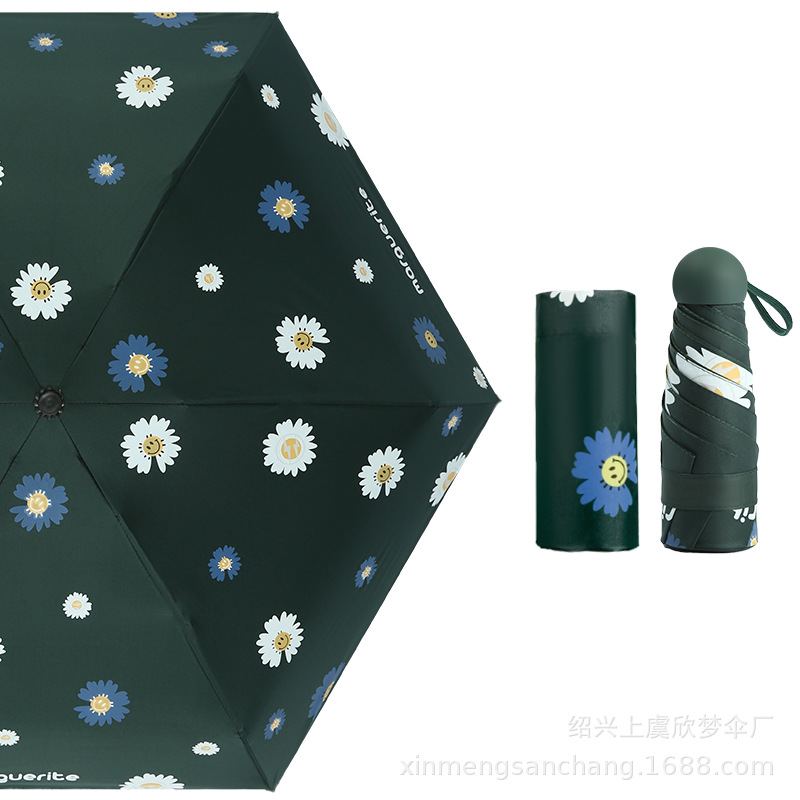 재고 도매 풀 에디션 데이지 인쇄 블랙 5 배 우산 자외선 차단제 우산 여러 가지 빛깔의 인쇄 로고스토어 가기