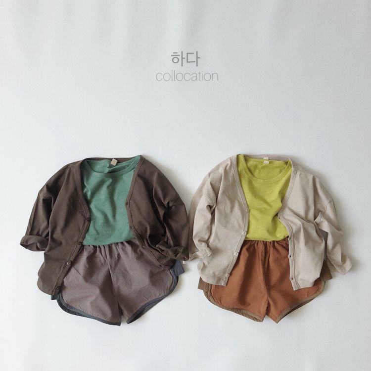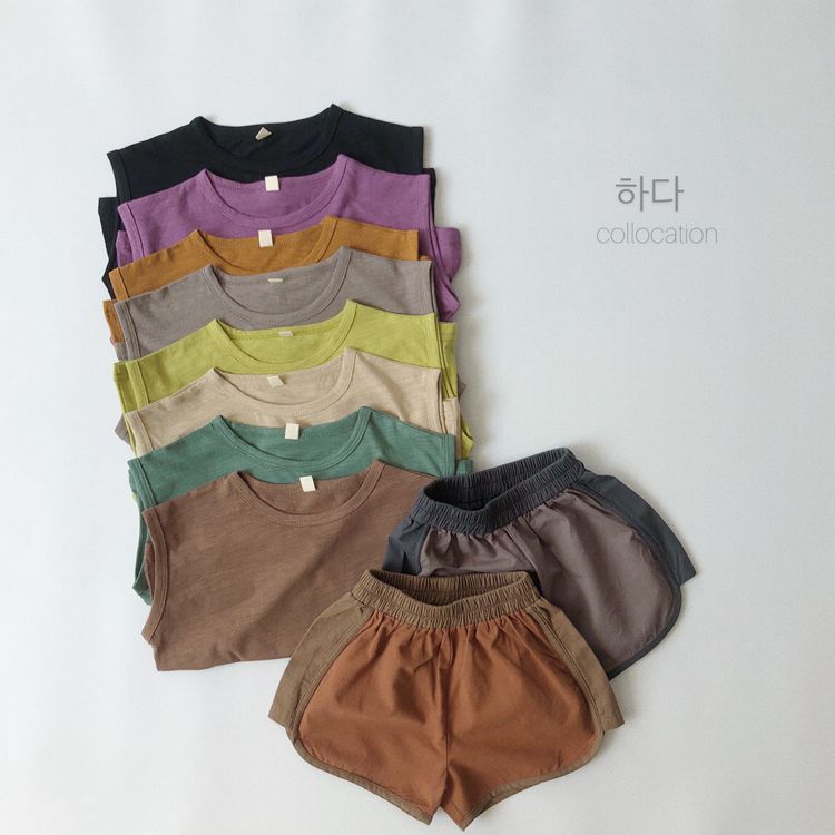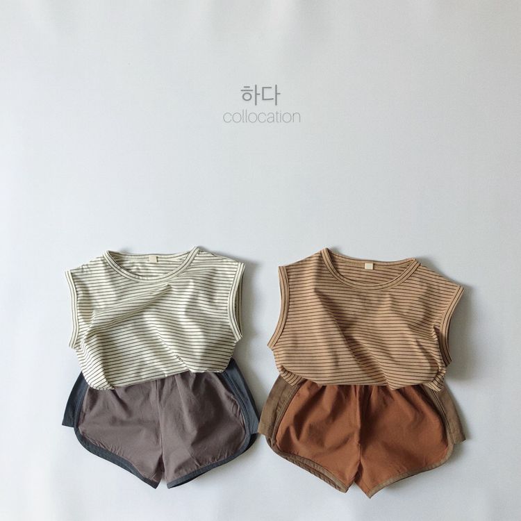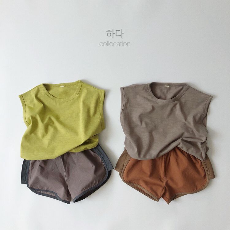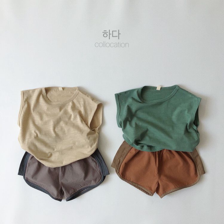 한국 아동 의류 어린이 대비 색상 가장자리 3 점 반바지 여름 스포츠 바지 소년 소녀 핫 팬츠 모리 느슨한 서양 스타일스토어 가기