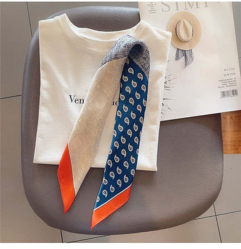 复古腰果花真丝小丝巾女夏季装饰护颈方巾小领巾桑蚕丝围巾春秋薄