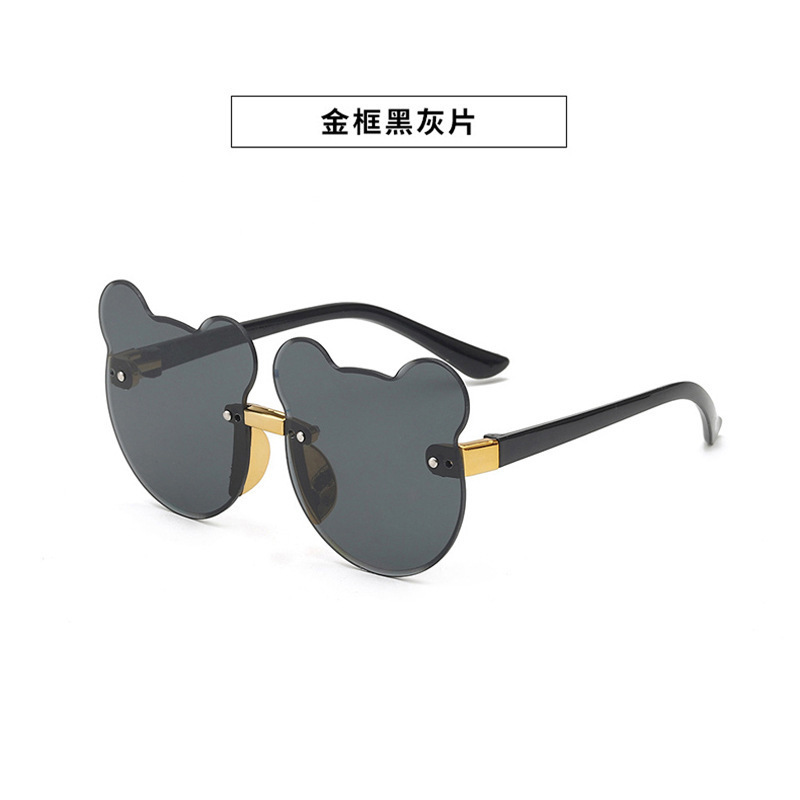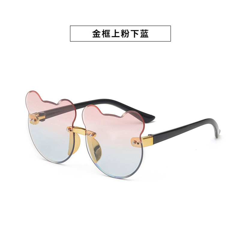 新款猫耳朵太阳镜小熊儿童眼镜街拍切边时尚街拍抄片无边框墨镜