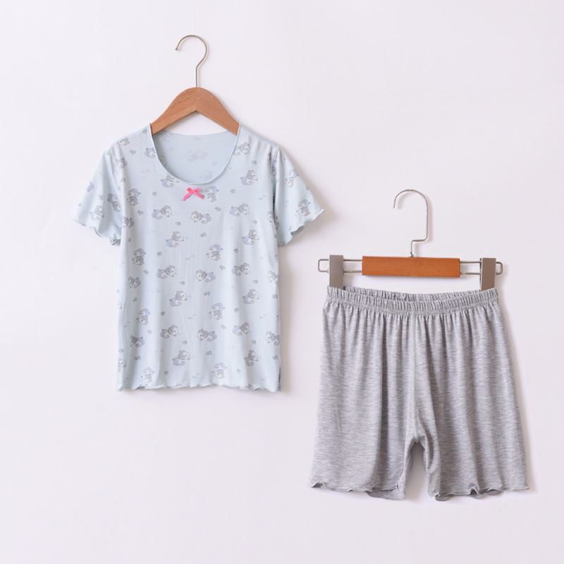 60 모달 어린이 가정 옷 세트 여름 얇은 공주 여아 에어컨 옷 아기 반팔 잠옷
