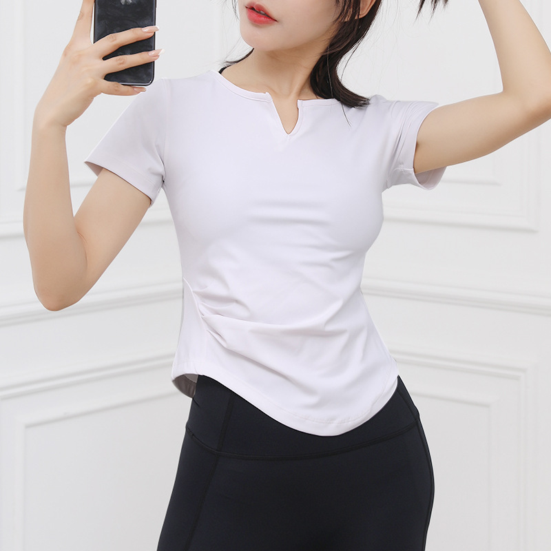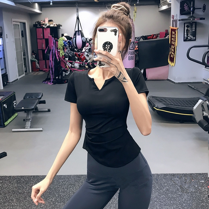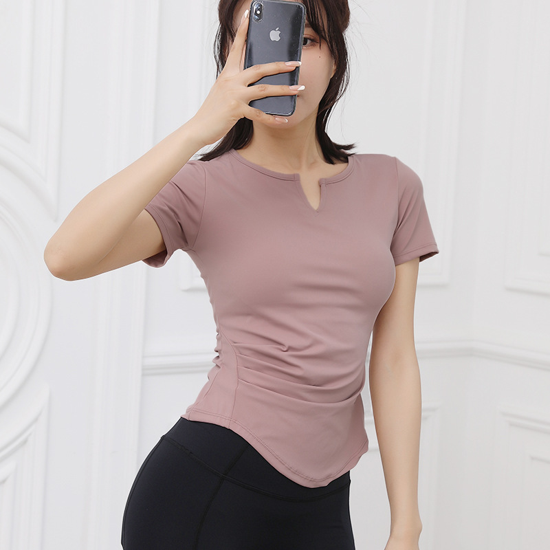 반팔 스포츠 티셔츠 여성용 여름 얇은 달리기 피트니스 탑 슬림핏 슬리밍 탄성 속건 타이트 요가 세트