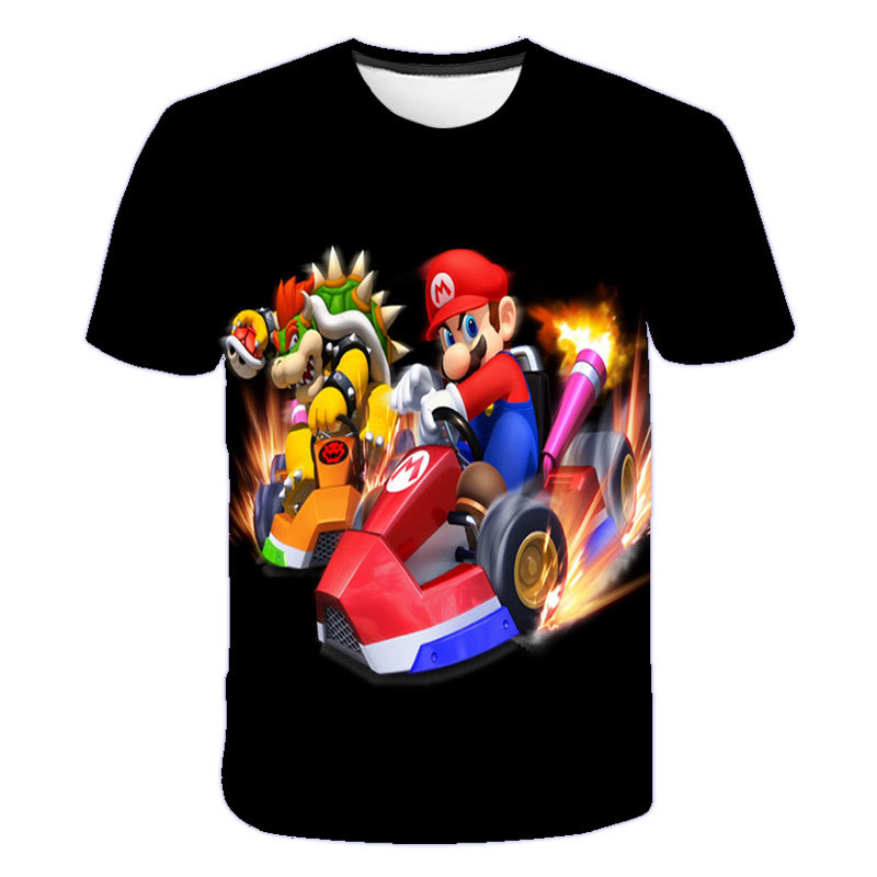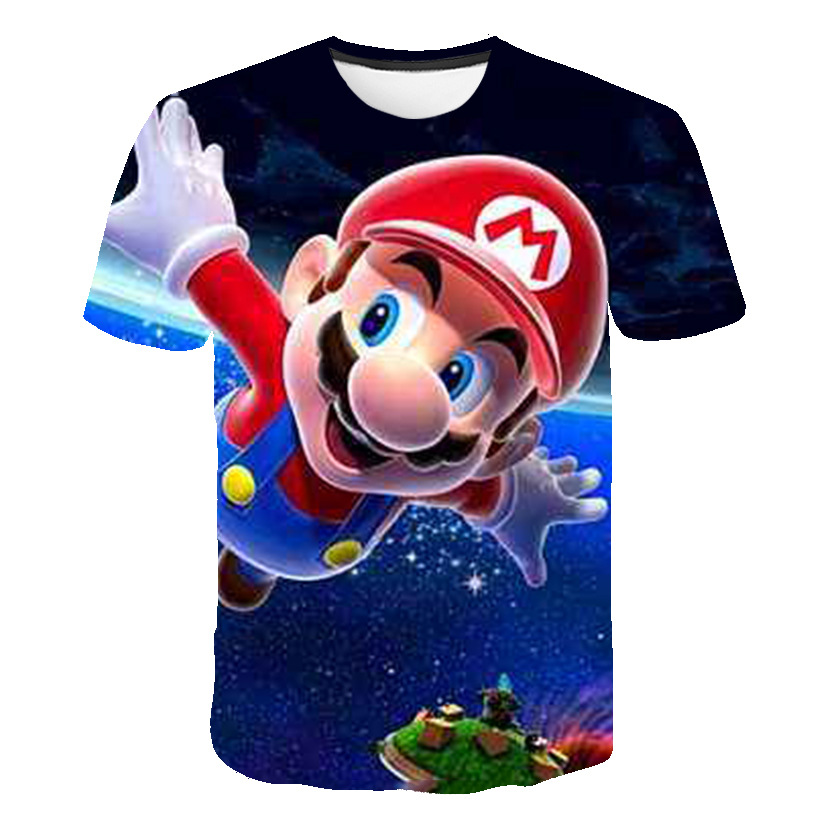 새로운 아동복 마리오 반팔 메리 3D 인쇄 티셔츠 소년과 소녀를위한 반팔 라운드 넥 여름 커플 의류스토어 가기