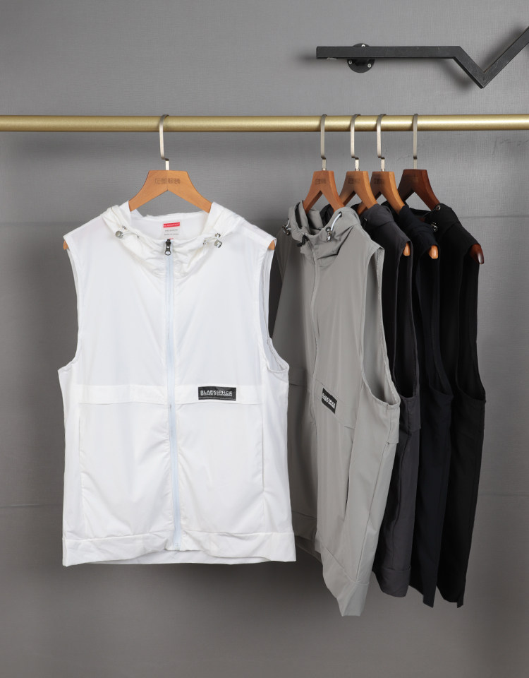 테일 싱글 테일 용품 봄과 여름 야외 등산 여행 스포츠 승마 남성용 단색 지퍼 조끼 빠른 건조 조끼