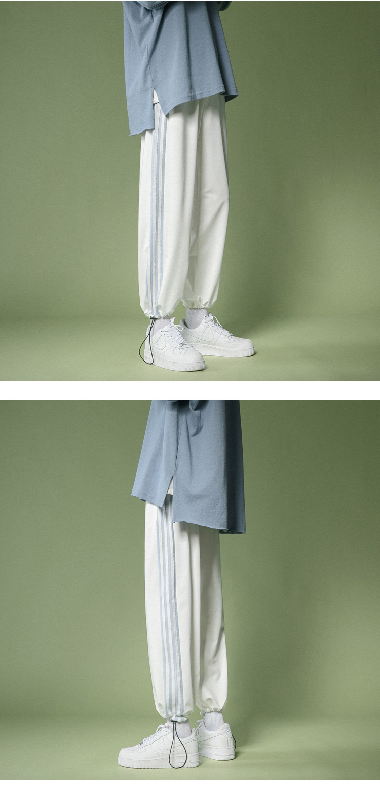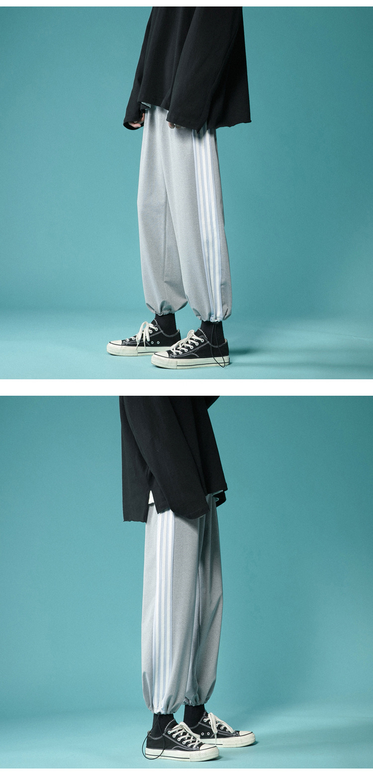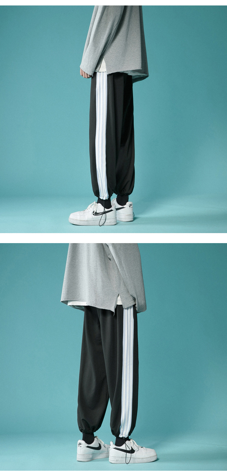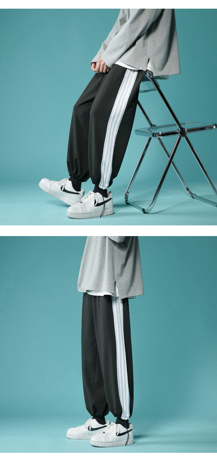 6535 면 스트라이프 캐주얼 바지 여자의 2022 여름 느슨한 드로스트링 발목 길이 바지 한국 스타일 플러스 사이즈 트렌디 스트레이트 바지스토어 가기