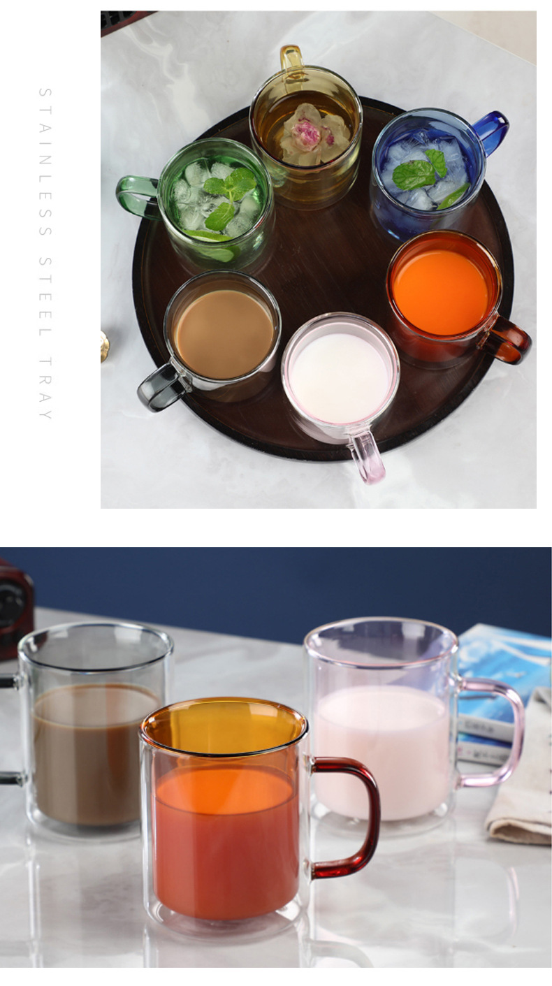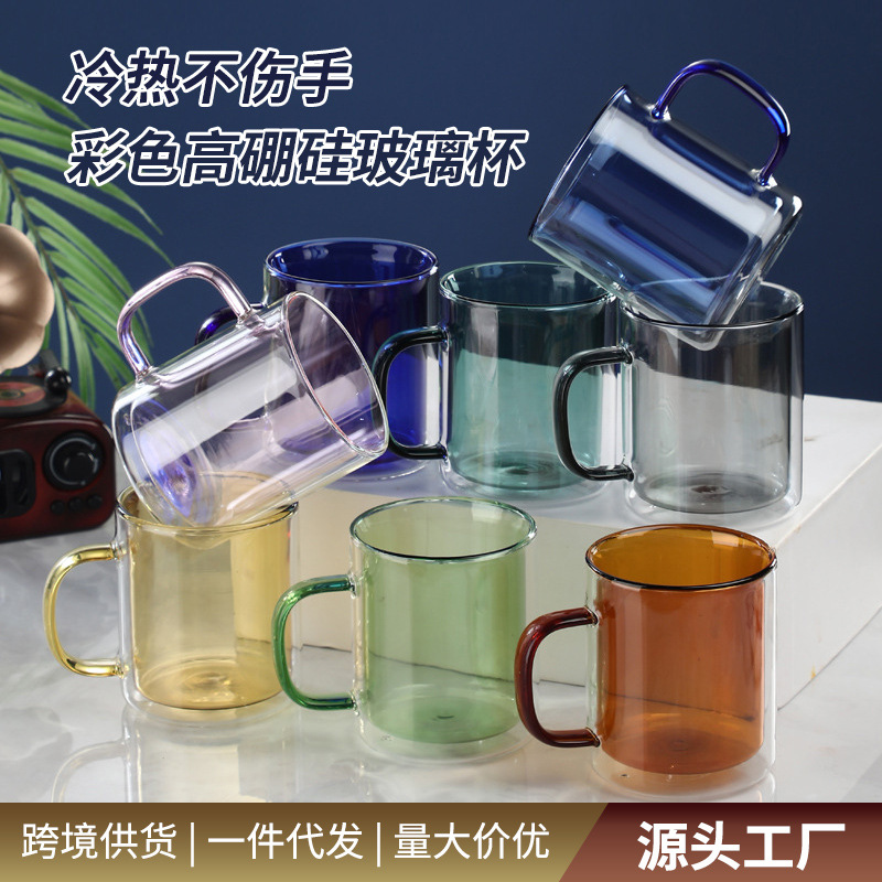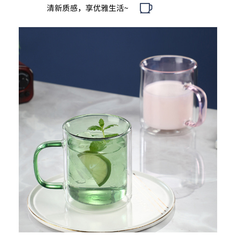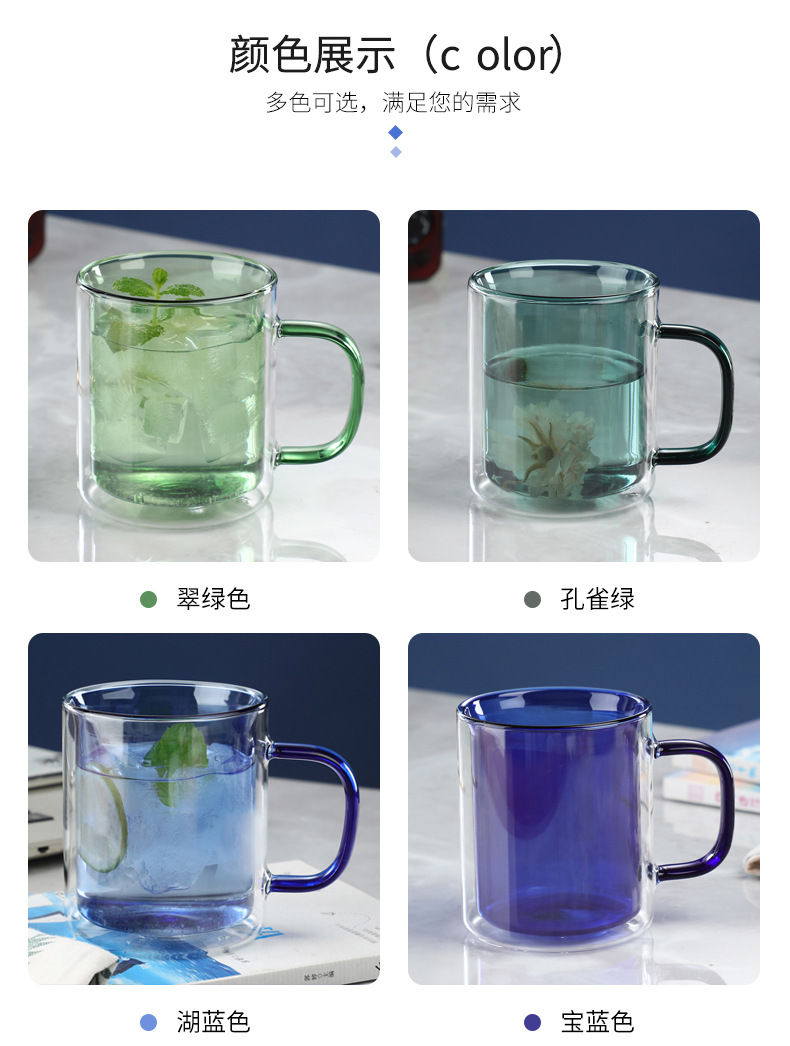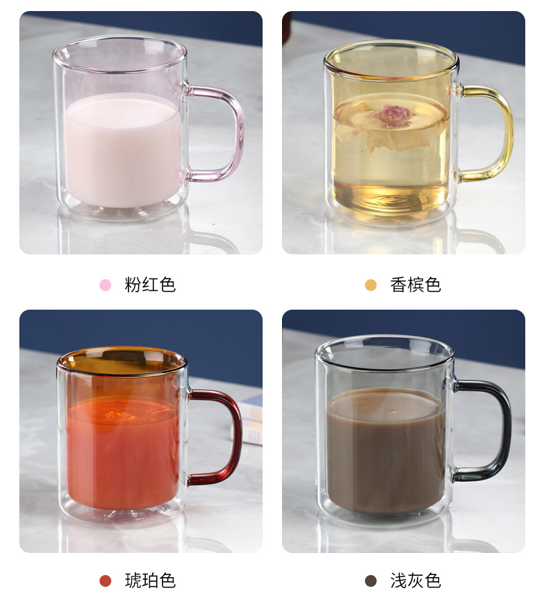 컬러 이중 유리컵, 손잡이가 있는 고붕규산 유리컵, 이중 아침식사용 우유컵, 가정용 이중컵스토어 가기