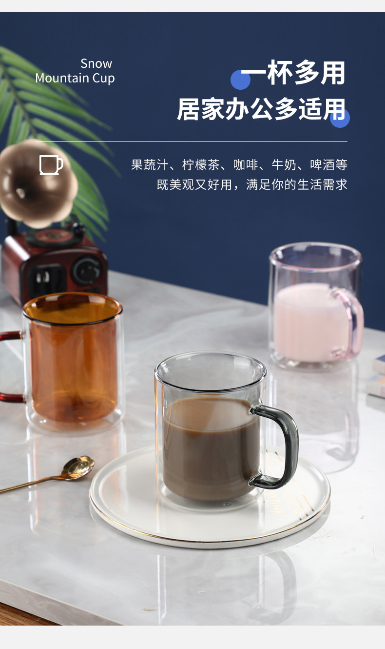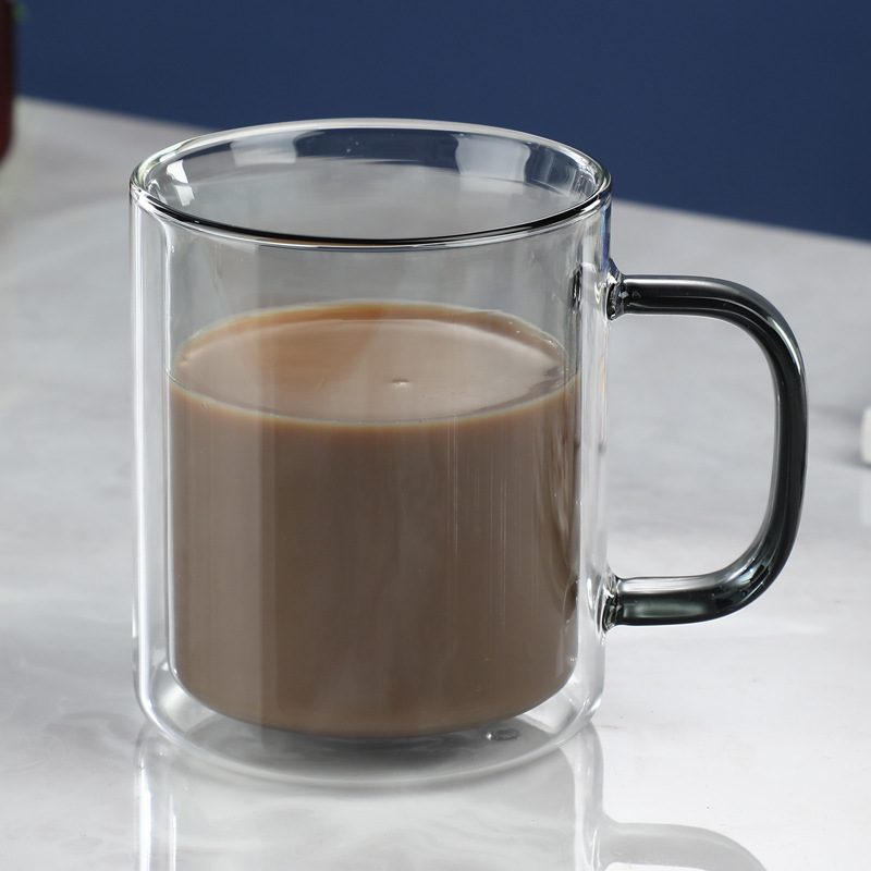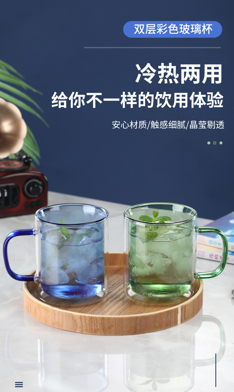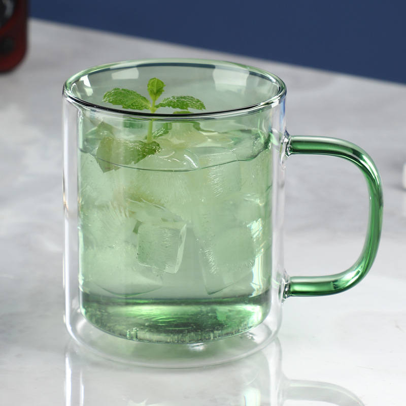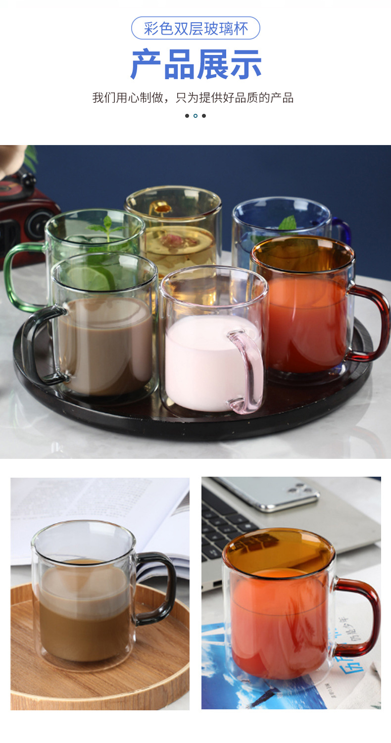 컬러 이중 유리컵, 손잡이가 있는 고붕규산 유리컵, 이중 아침식사용 우유컵, 가정용 이중컵스토어 가기