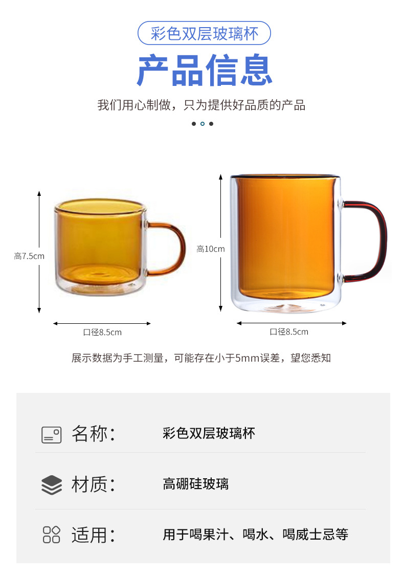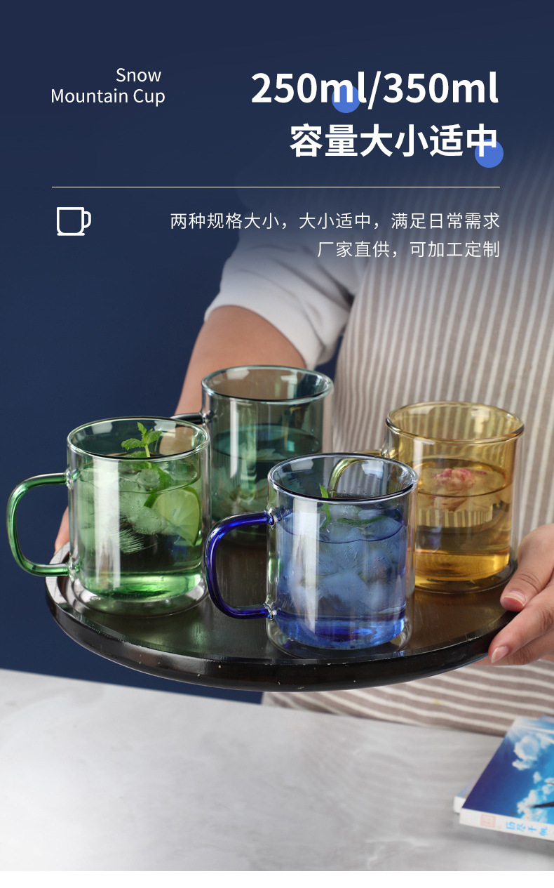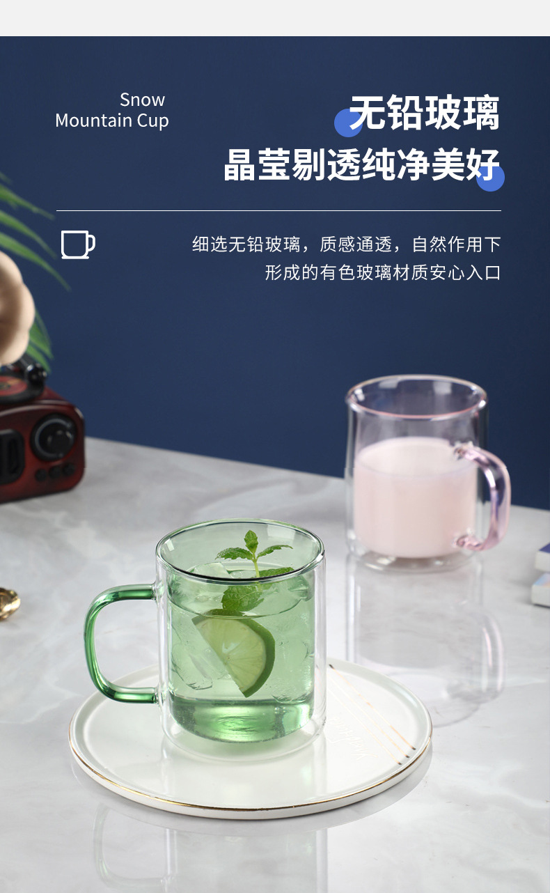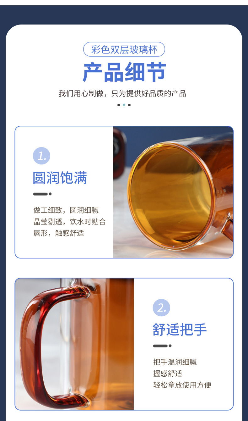 컬러 이중 유리컵, 손잡이가 있는 고붕규산 유리컵, 이중 아침식사용 우유컵, 가정용 이중컵스토어 가기
