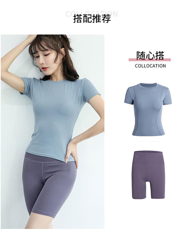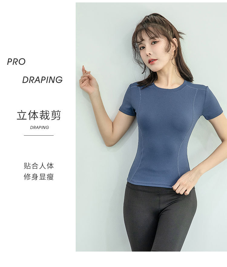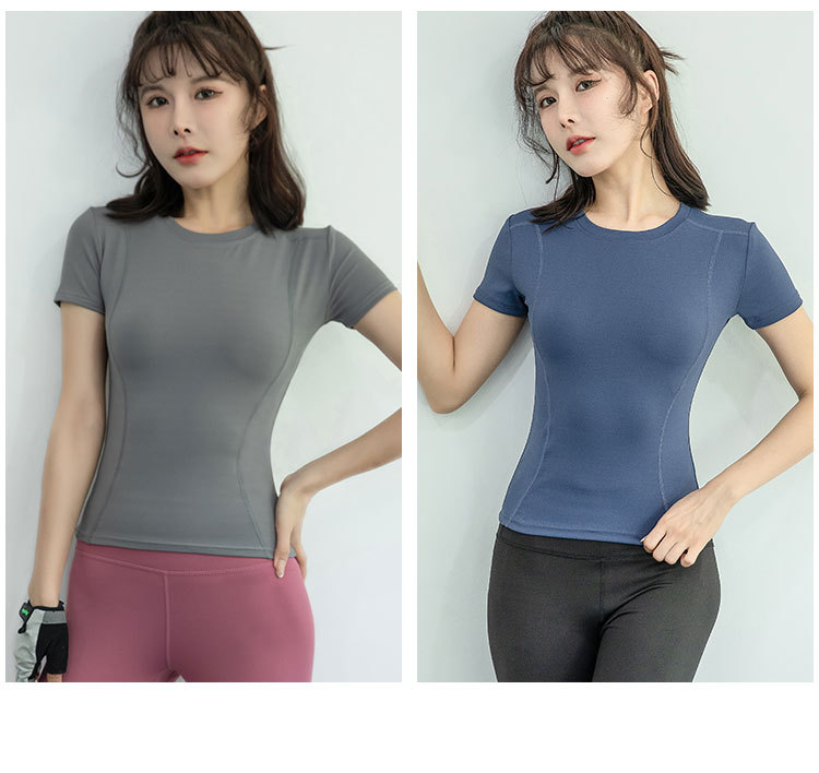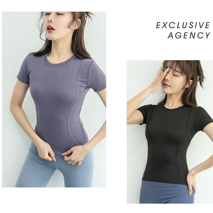 슬림핏 요가복 여성용 스포츠 피트니스 의류 타이트 러닝 땀 흡수 속건성 의류 슬림핏 타이트 요가 반팔 티셔츠스토어 가기