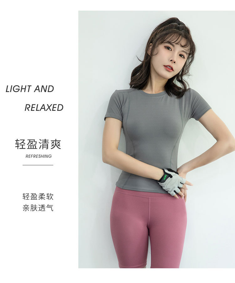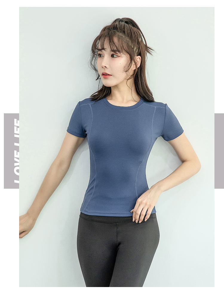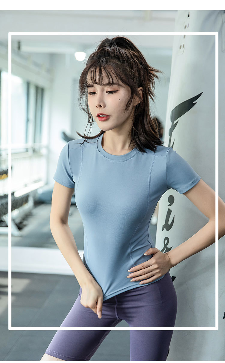 슬림핏 요가복 여성용 스포츠 피트니스 의류 타이트 러닝 땀 흡수 속건성 의류 슬림핏 타이트 요가 반팔 티셔츠