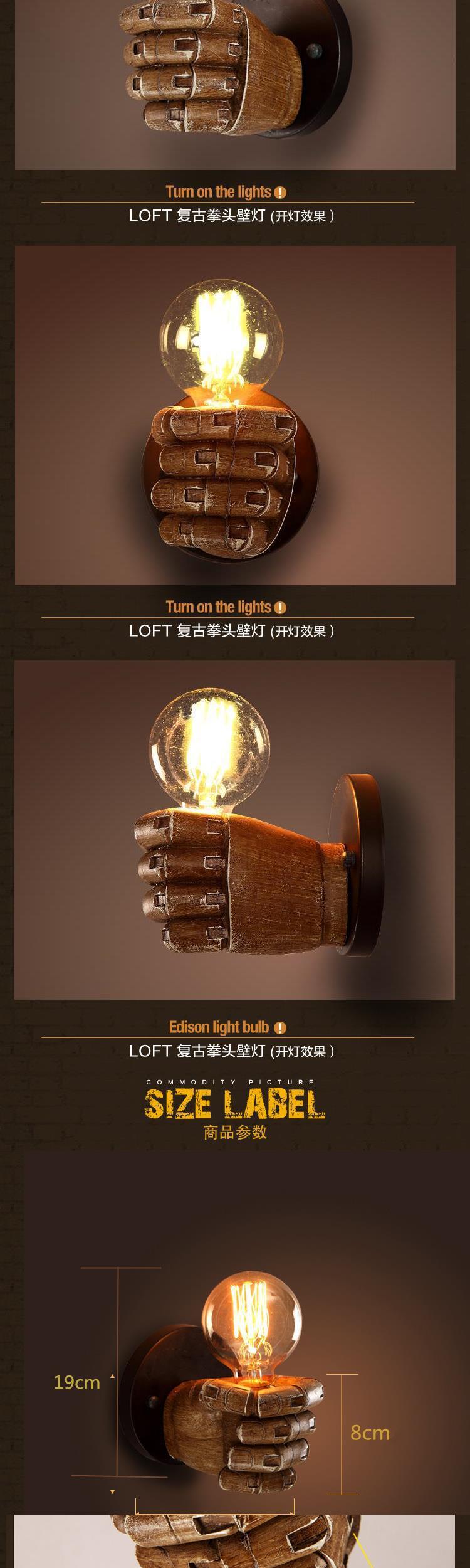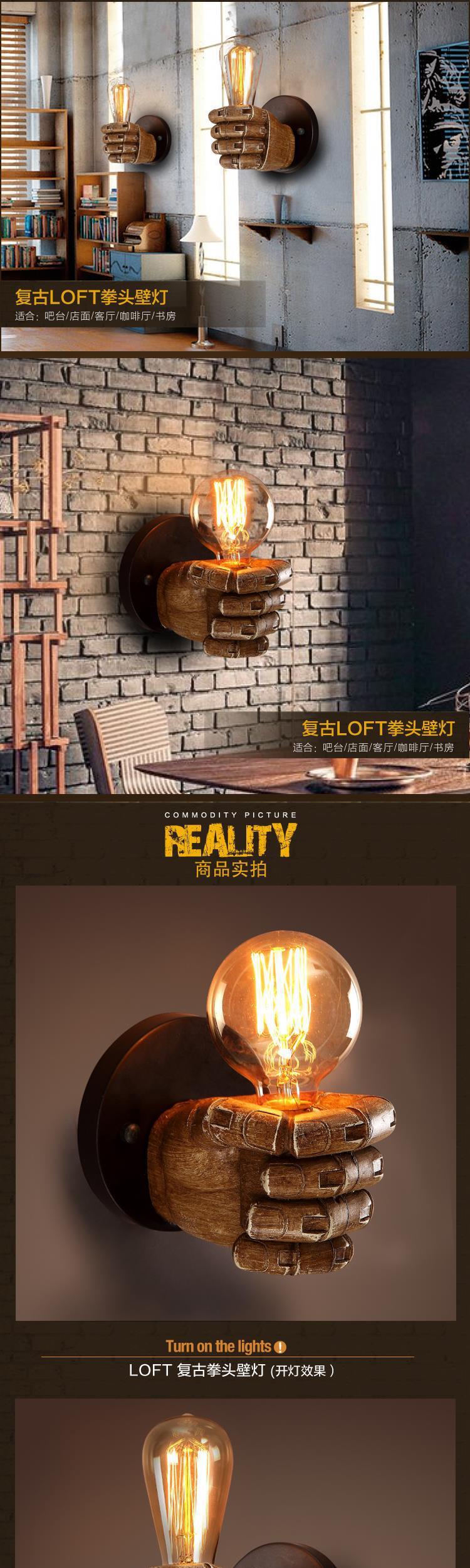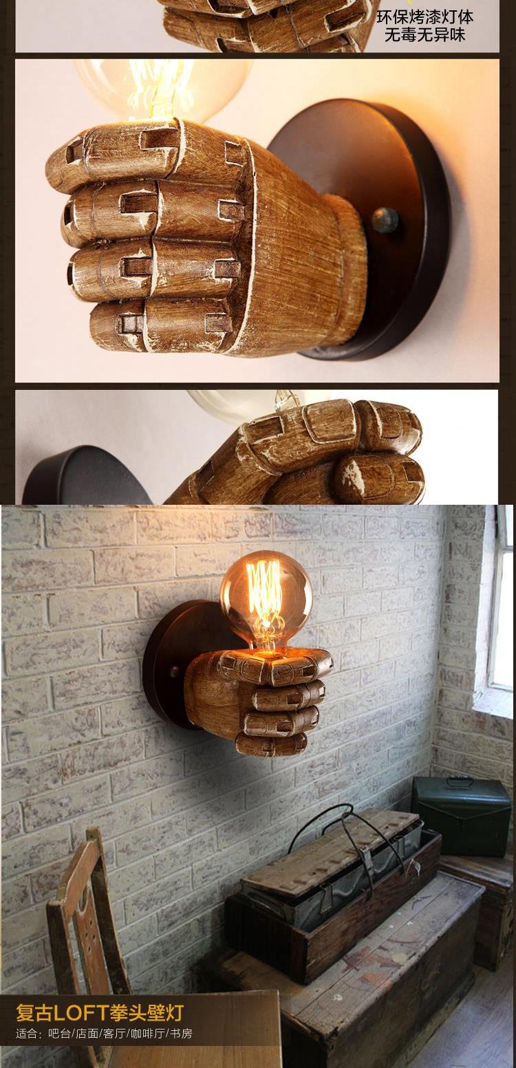 빈티지 산업 스타일 수지 주먹 왼쪽과 오른쪽 벽 램프 바 카페 장식 골동품 벽 램프