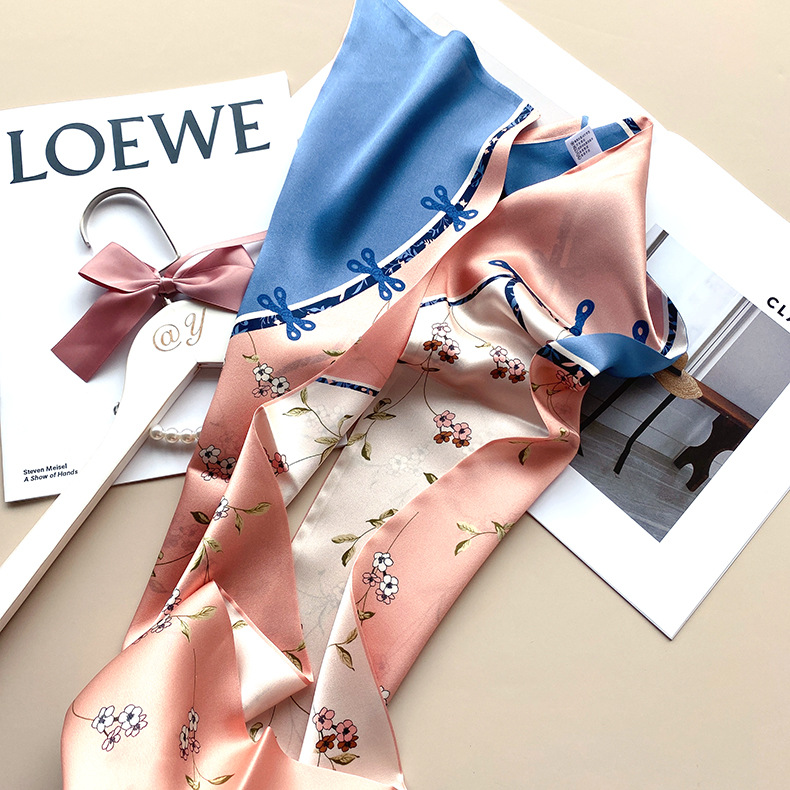 클래식 매력 실크 스카프 여성용 봄과 여름 빈티지 여성용 우아한 긴 더블 레이어 양면 베벨 장식 스카프