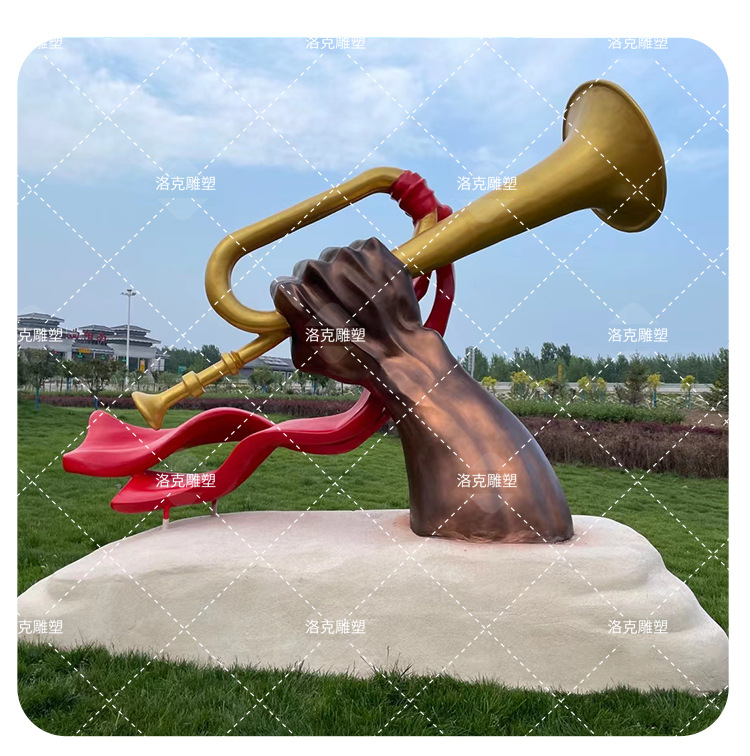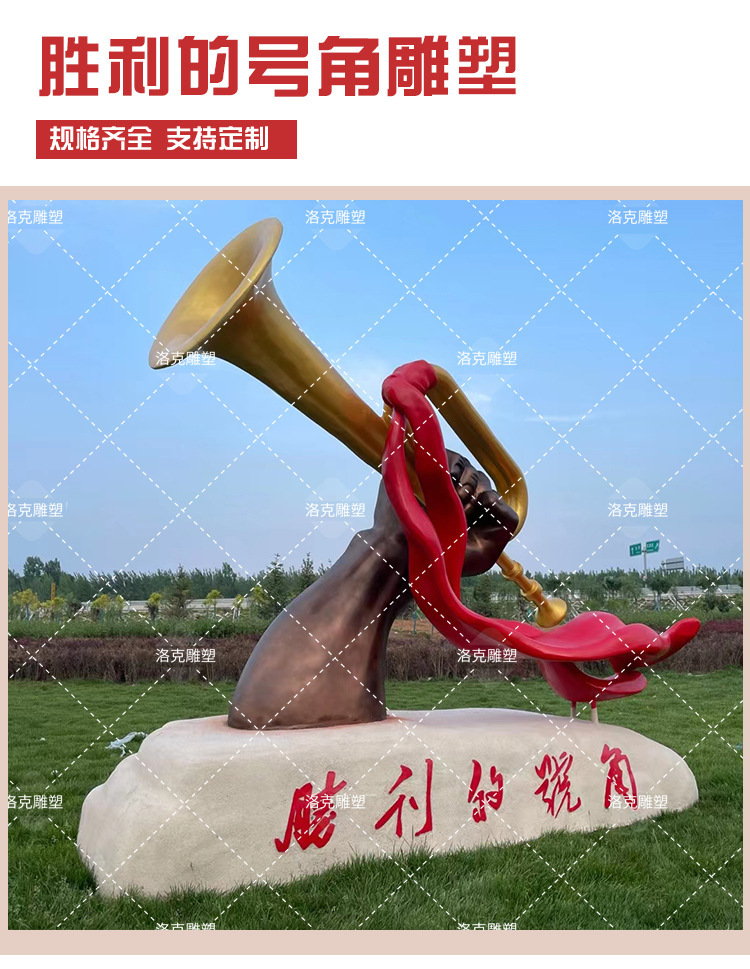 유리 섬유 강화 플라스틱 조각 모조 구리 승리 뿔 군사 교육 학교 공원 풍경 정원 유리 섬유 강화 플라스틱 장식품