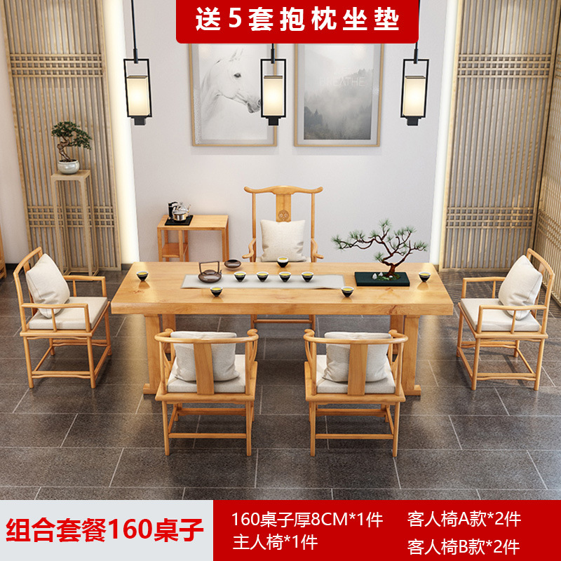 단단한 나무 차 테이블 새로운 중국 선 로그 색상 대형 보드 회의 차 테이블 스튜디오 협상 차 테이블과 의자 조합스토어 가기