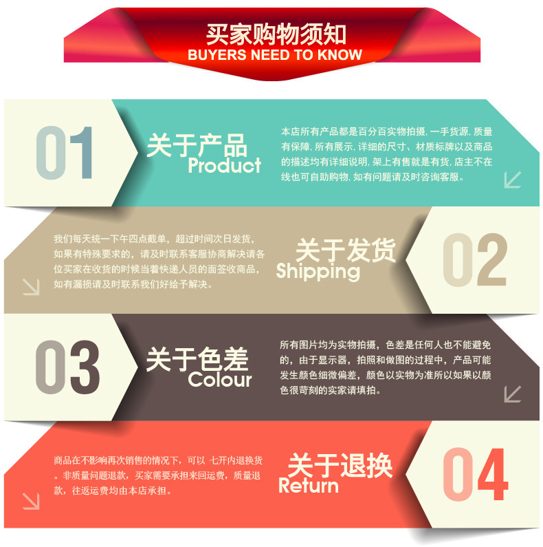 1、 关于图片:本店所有宝贝均实物拍摄,实物与图片基本一致,一分钱一分货,质量保证,请各位顾客放心购买。