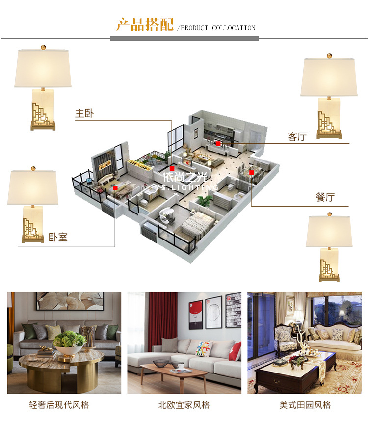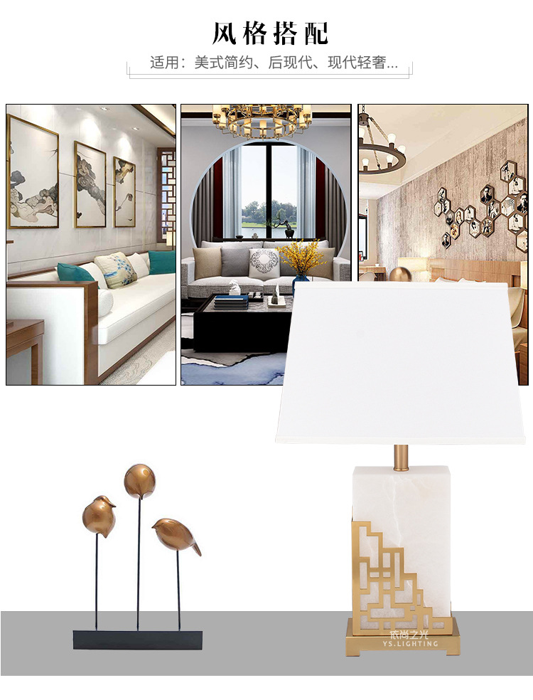 새로운 중국 스타일 간단한 현대 대리석 테이블 램프 창조적 인 개인화 된 고급 조명 럭셔리 따뜻한 거실 침실 장식 침대 옆 램프스토어 가기