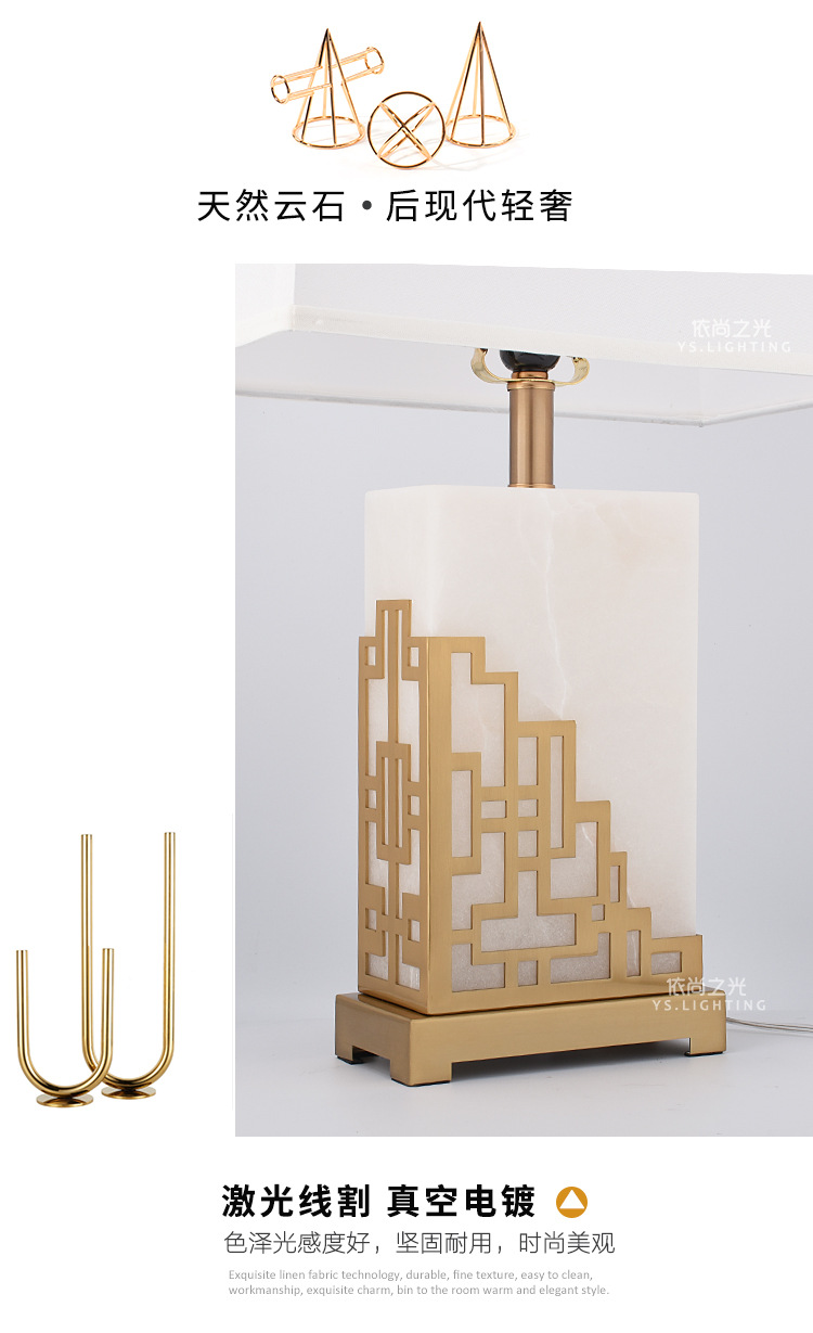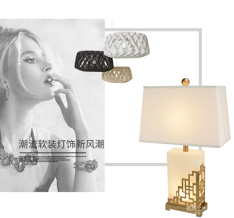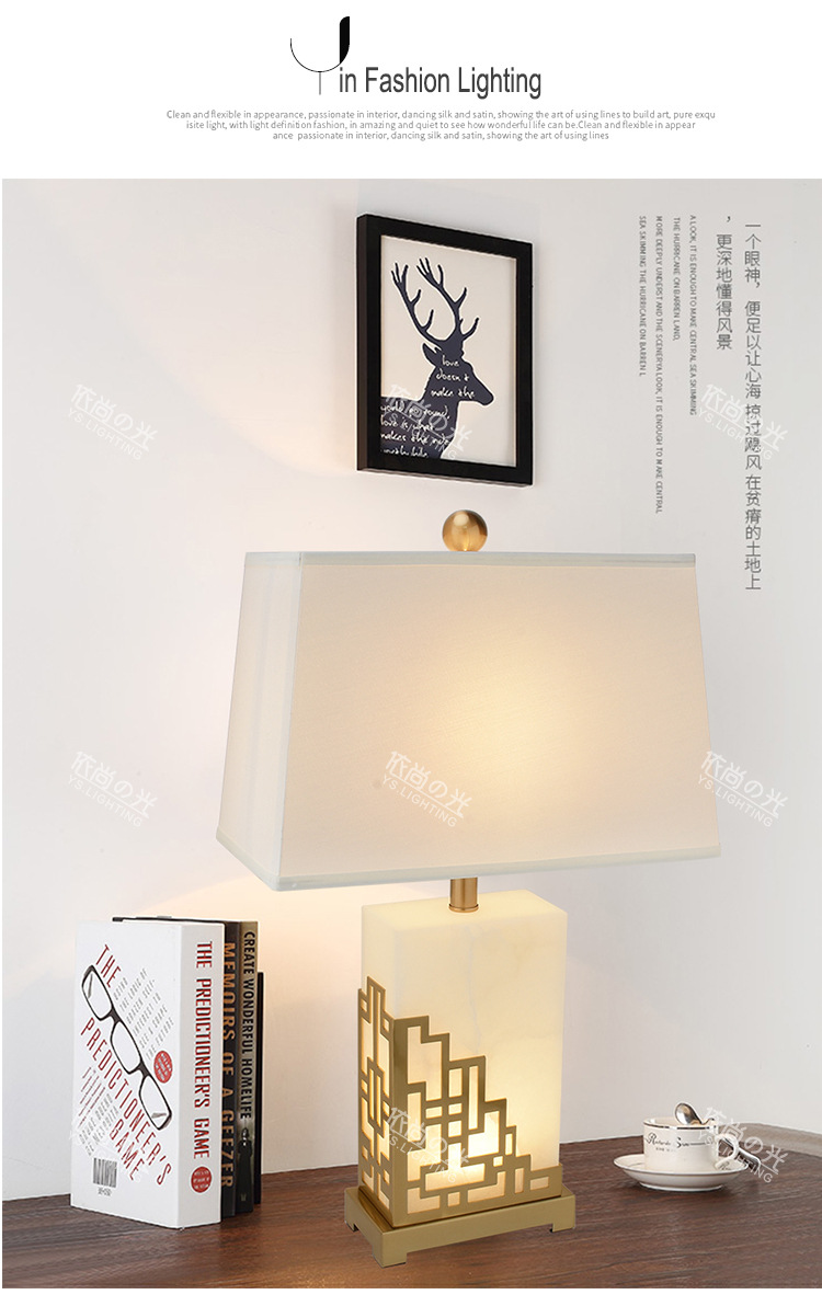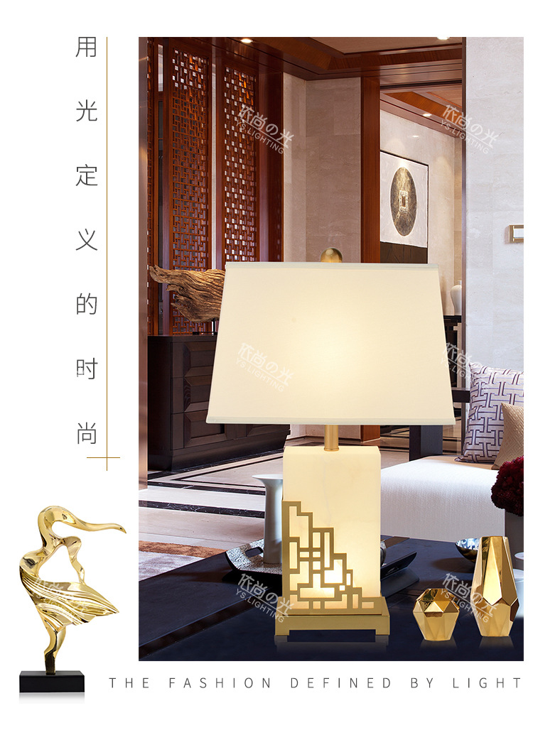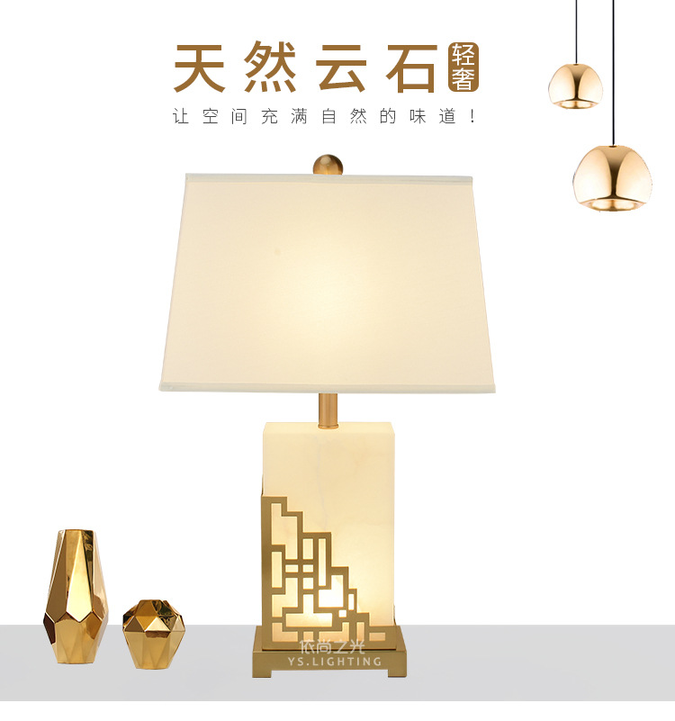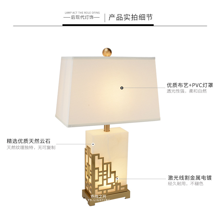 새로운 중국 스타일 간단한 현대 대리석 테이블 램프 창조적 인 개인화 된 고급 조명 럭셔리 따뜻한 거실 침실 장식 침대 옆 램프