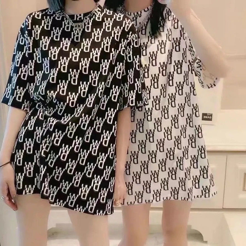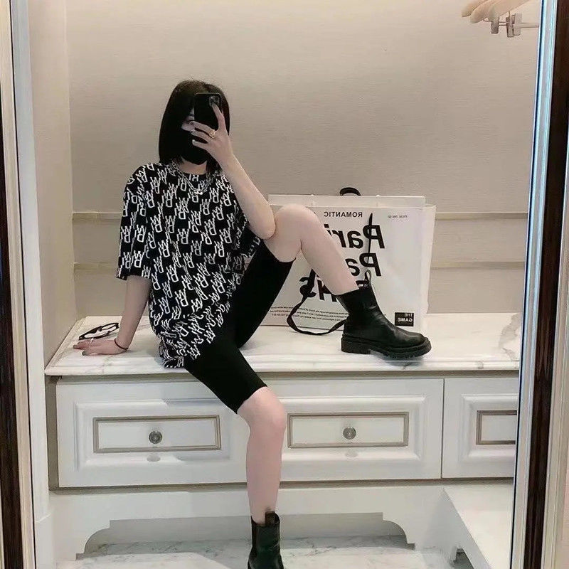 인터넷 연예인 레터 프린트 루즈한 대형 버전 2021 여름 신작 인 반팔 티셔츠 캐주얼 올 매치 여성용 반팔 탑