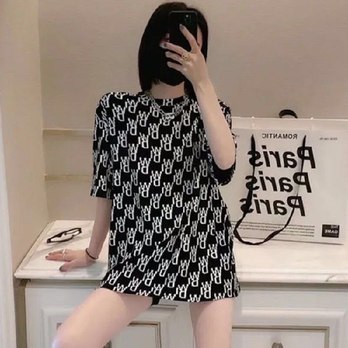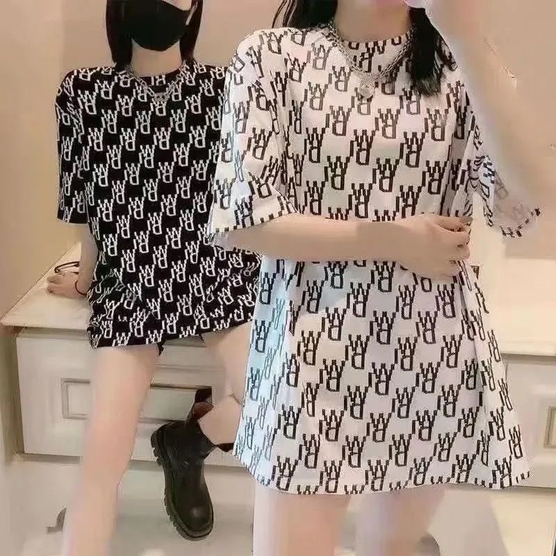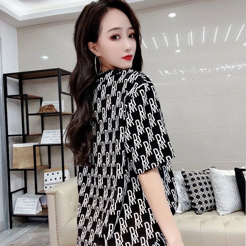 인터넷 연예인 레터 프린트 루즈한 대형 버전 2021 여름 신작 인 반팔 티셔츠 캐주얼 올 매치 여성용 반팔 탑스토어 가기