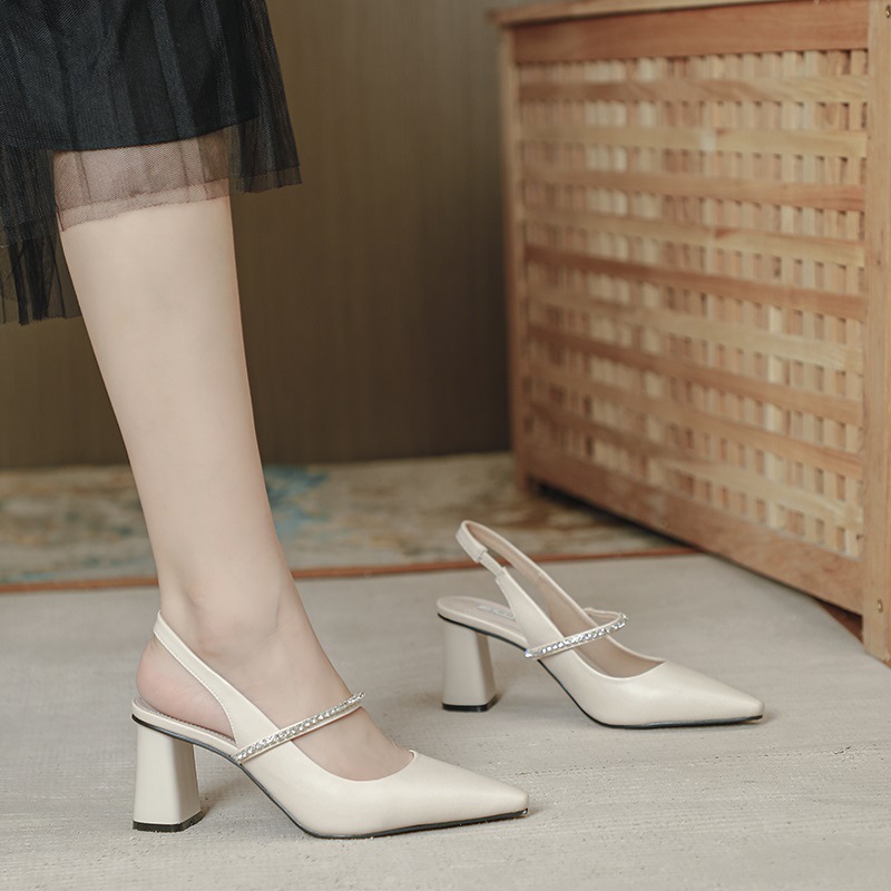 Baotou 샌들 여성의 2021 여름 새로운 패션 두꺼운 하이힐 요정 스타일 라인 석 메리 제인 여성 신발 뾰족한 후면스토어 가기