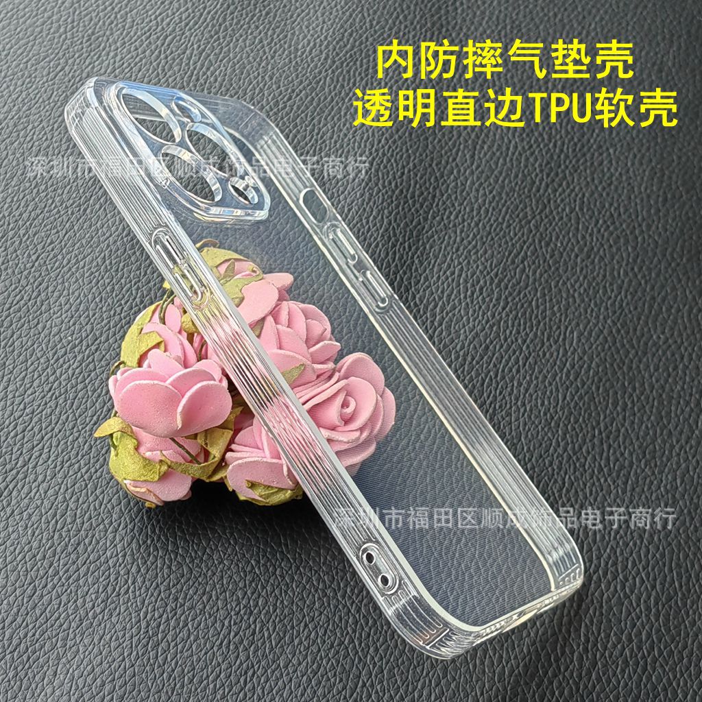 新品:内防摔气垫壳 透明直边TPU软壳