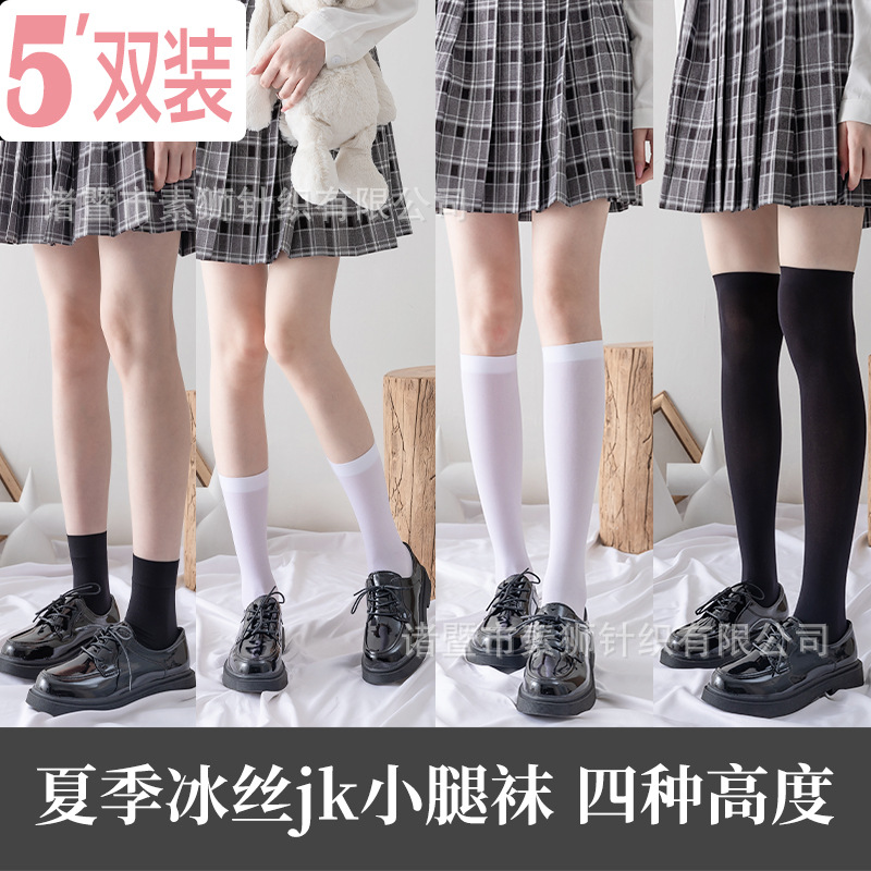 Jk 양말 여성용 중간 배럴 봄과 여름 얇은 무릎 높이 스타킹 종아리 긴 흑백 무릎 높이 여름 인 조수스토어 가기