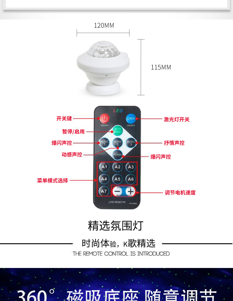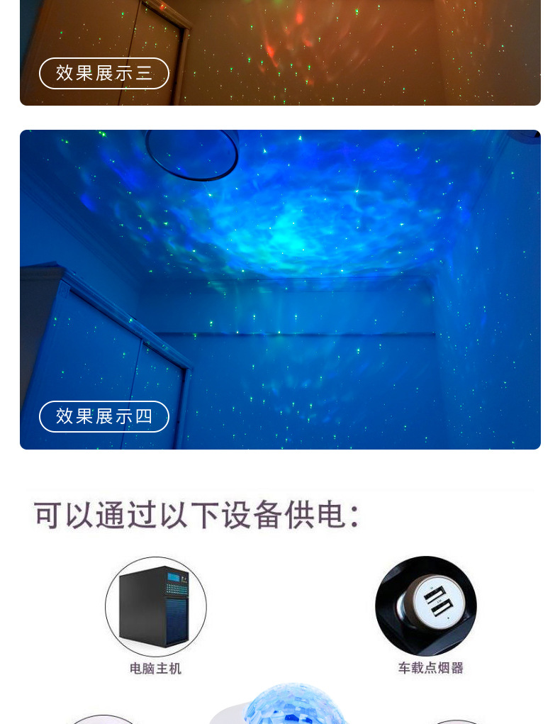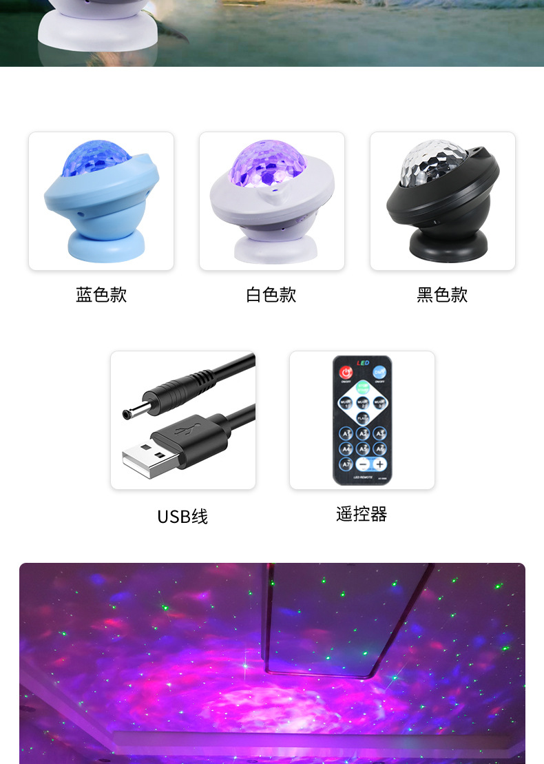 별빛 프로젝터 조명 크리스마스 장식 분위기 조명 해양 물결 무늬 야간 조명 자석 무대 조명 자석 회전 조명