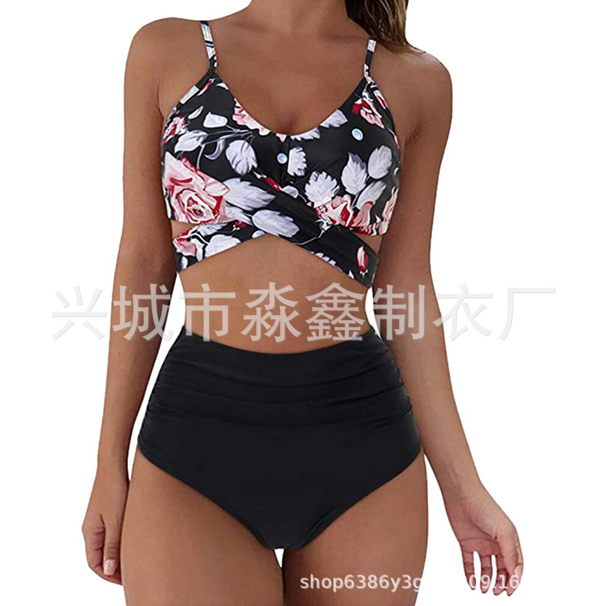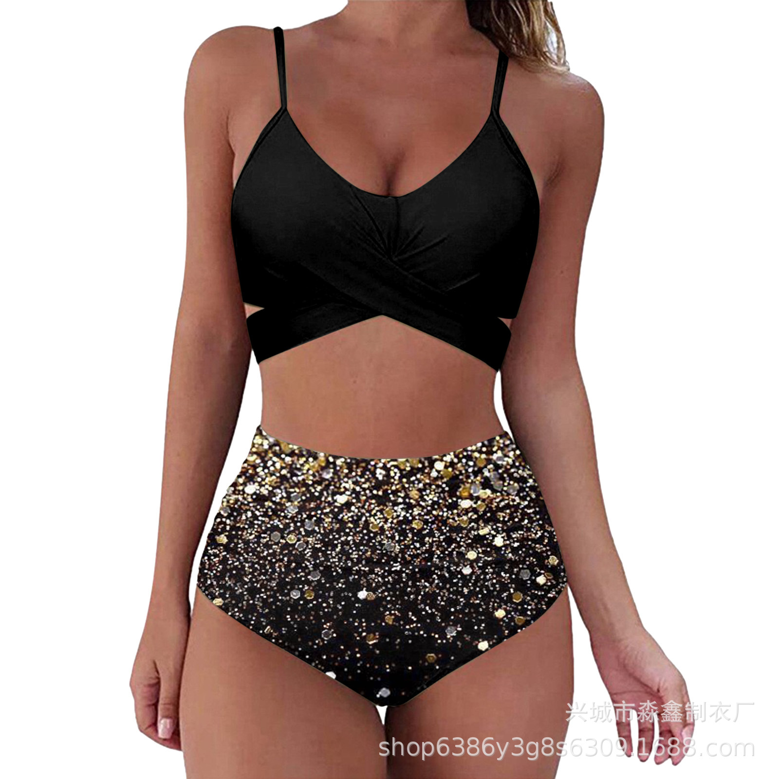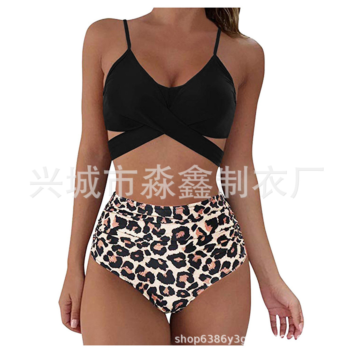 유럽과 미국의 인기 표범 무늬 크로스 하이 웨이스트 스플릿 비키니 섹시한 BIKINI 수영복 여성 소스 공장 직접 공급