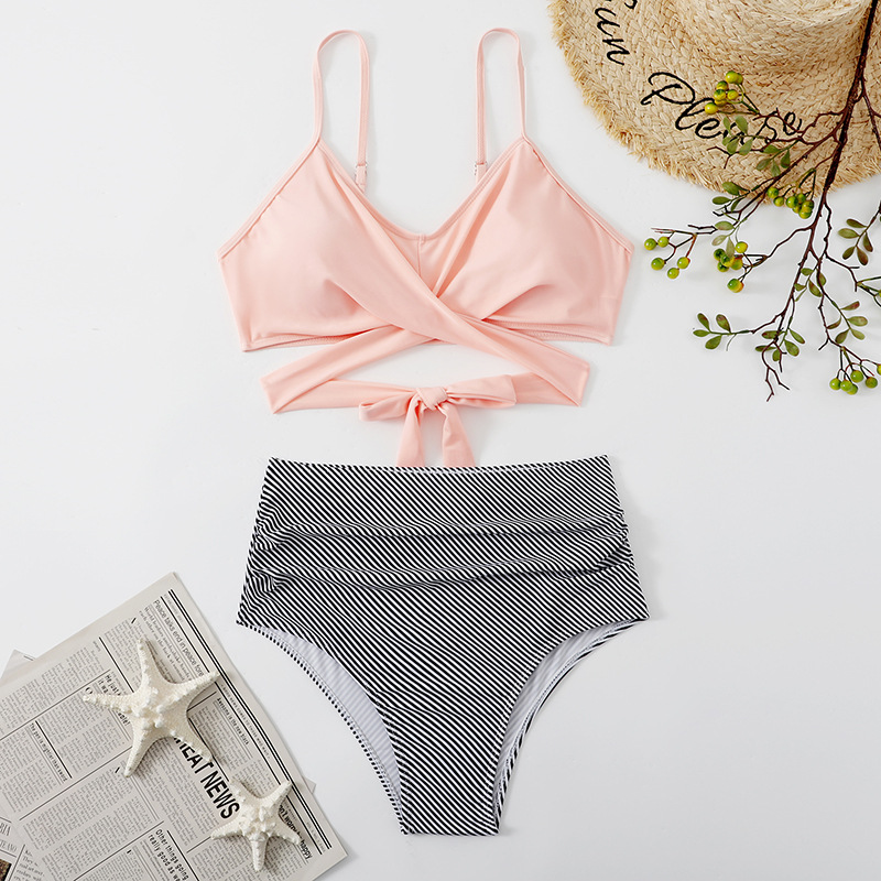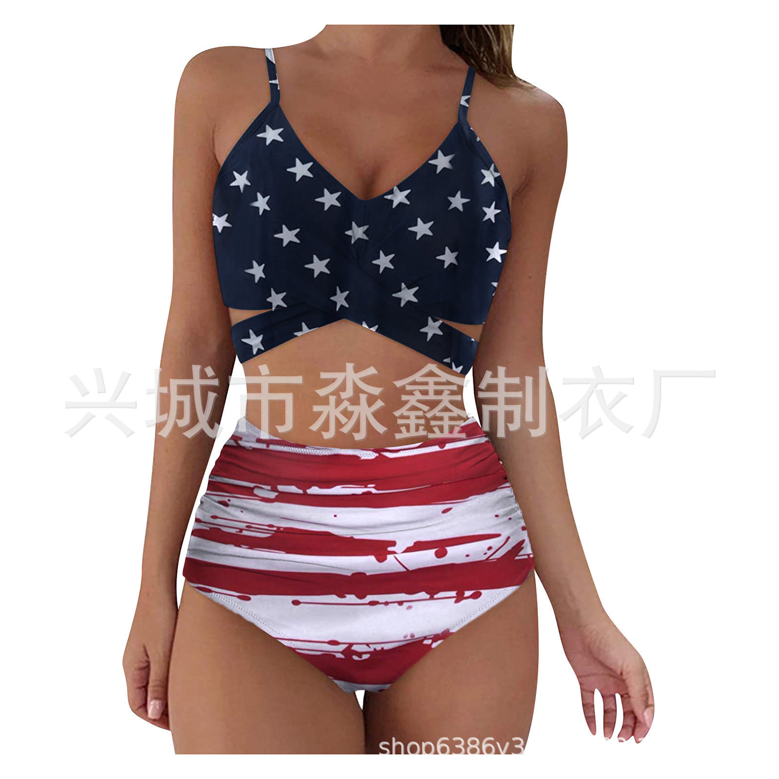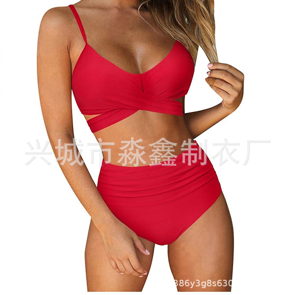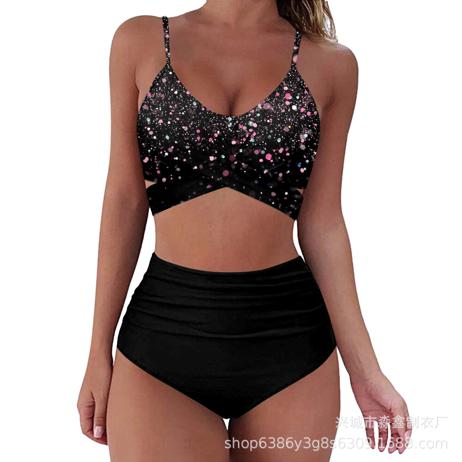 유럽과 미국의 인기 표범 무늬 크로스 하이 웨이스트 스플릿 비키니 섹시한 BIKINI 수영복 여성 소스 공장 직접 공급