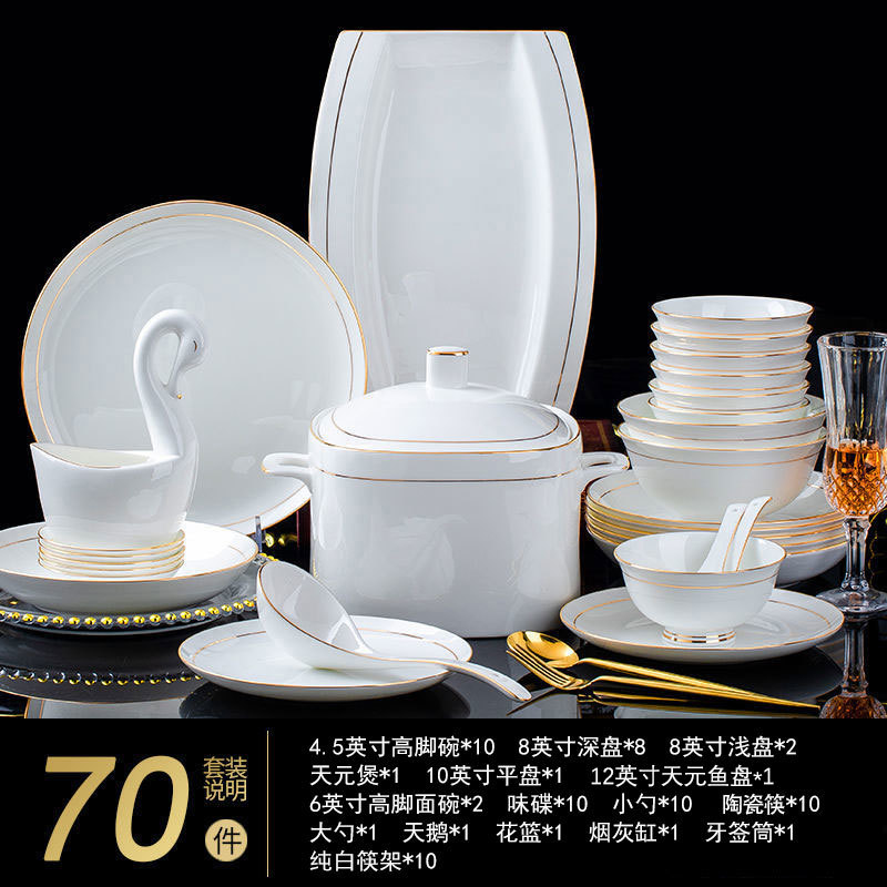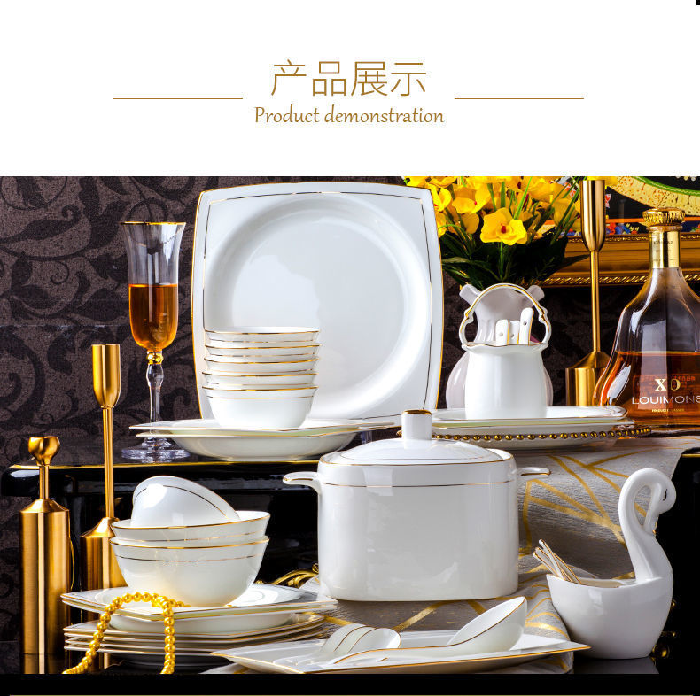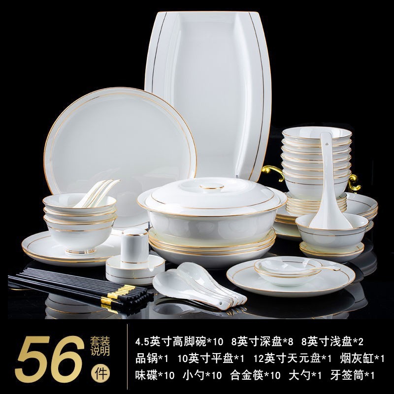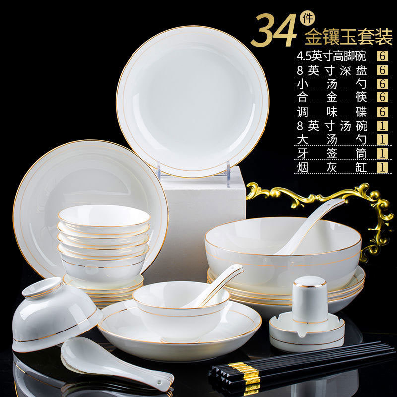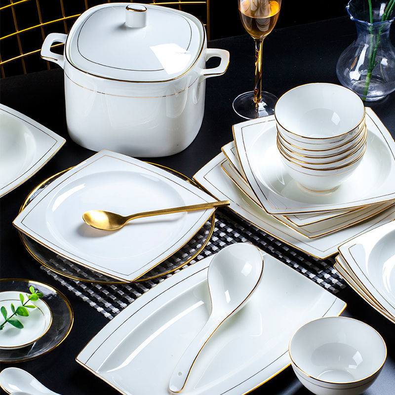 중국 스타일 간단한 식기 골드 페인팅 프놈펜 라이트 럭셔리 gingdezhen 세라믹 세트 요리와 접시 젓가락 단일 조각 무료 조합