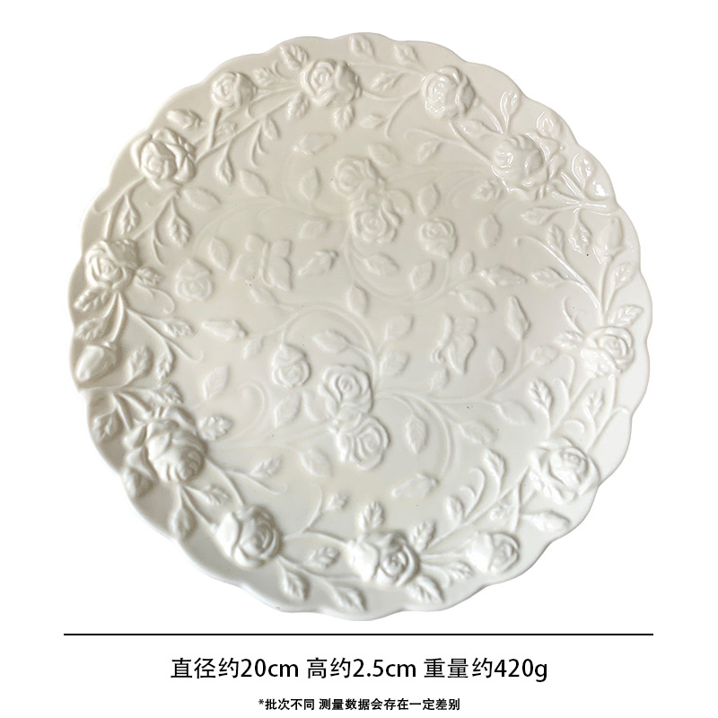 빈티지 크리에이 티브 프랑스 스타일 영국 스타일 양각 로즈 세라믹 커피 컵 8 인치 디스크 가정용 디저트 플레이트 아침 식사 접시 식사