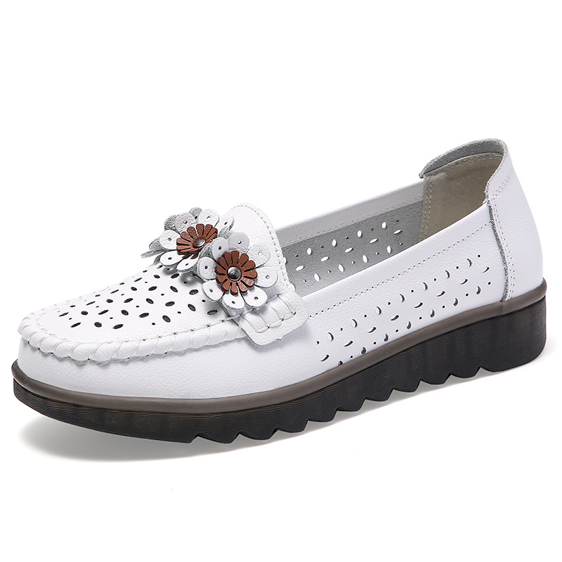 국경 여름 새 정품 가죽 콩 신발 여성 중공 통기성 플랫 바닥 구멍 신발 임산부 대형 부드러운 바닥 엄마 신발스토어 가기