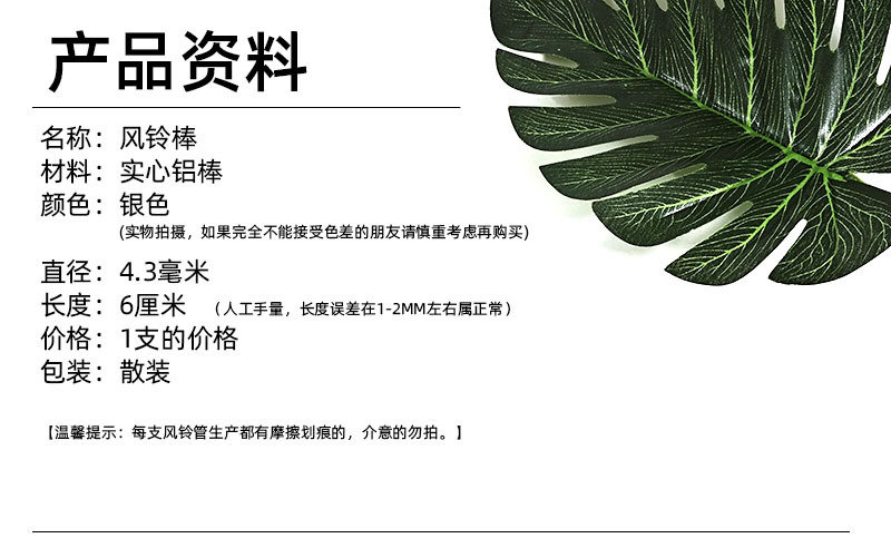 직경 4.3mm 길이 60mm 윈드 벨 로드 윈드 벨 튜브 재료 DIY 교재 유치원 제작 재료 알루미늄 막대