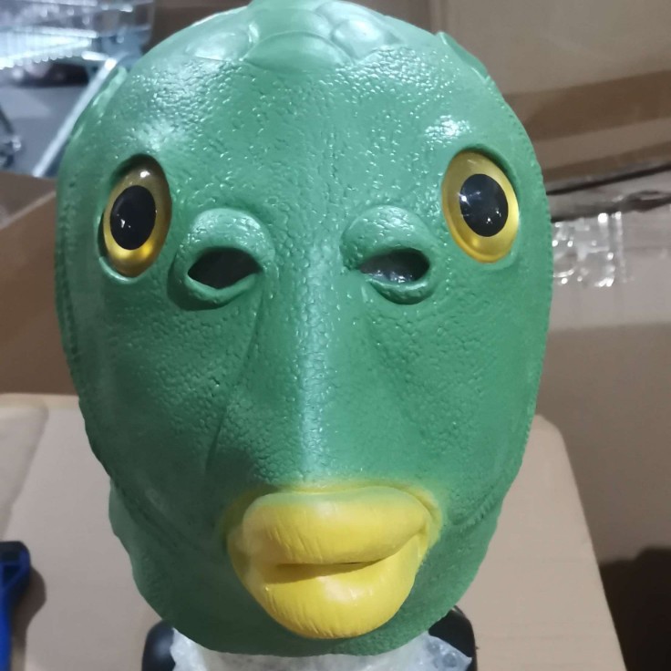 녹색 물고기 괴물 마스크 라텍스 헤드 기어 소품 할로윈 역할 놀이 TikTok 라이브 비디오 주변 성능 소품스토어 가기