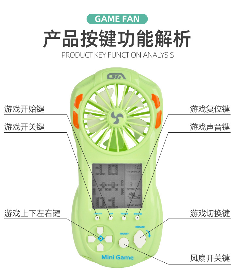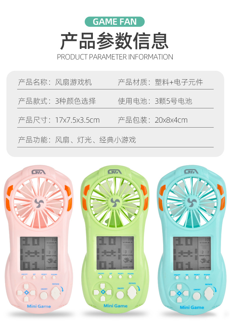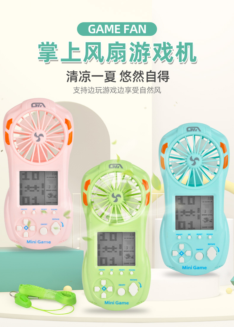 크로스 보더 Douyin 어린이 전기 테트리스 게임기 조명 장난감 슈퍼마켓 선물이있는 여름 팬