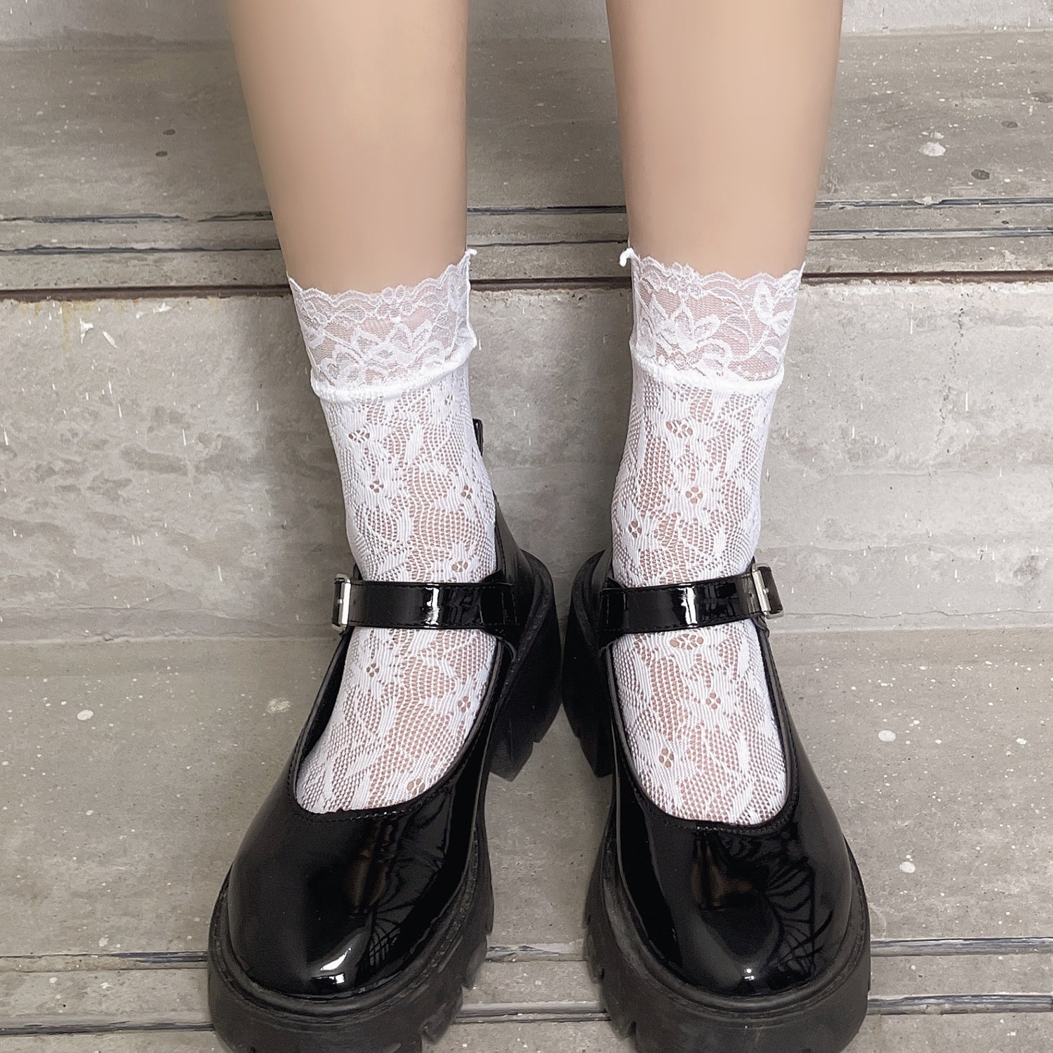 봄과 여름 신상품 매일 달콤한 모든 매치 레이스 레이스 화이트 레이스 플라워 자카드 여성용 하이 스트레치 양말스토어 가기