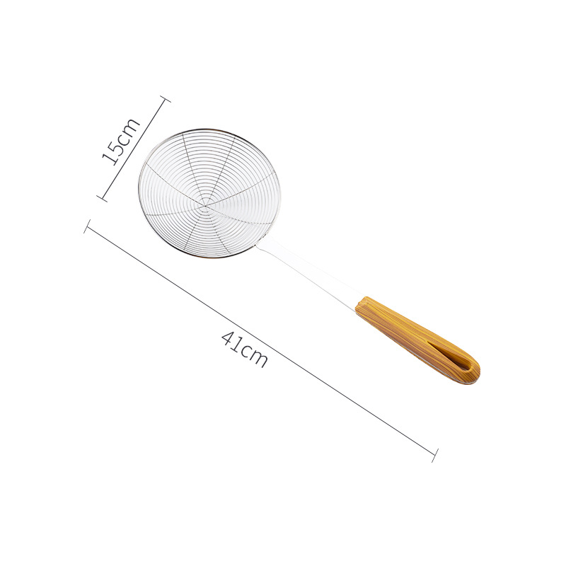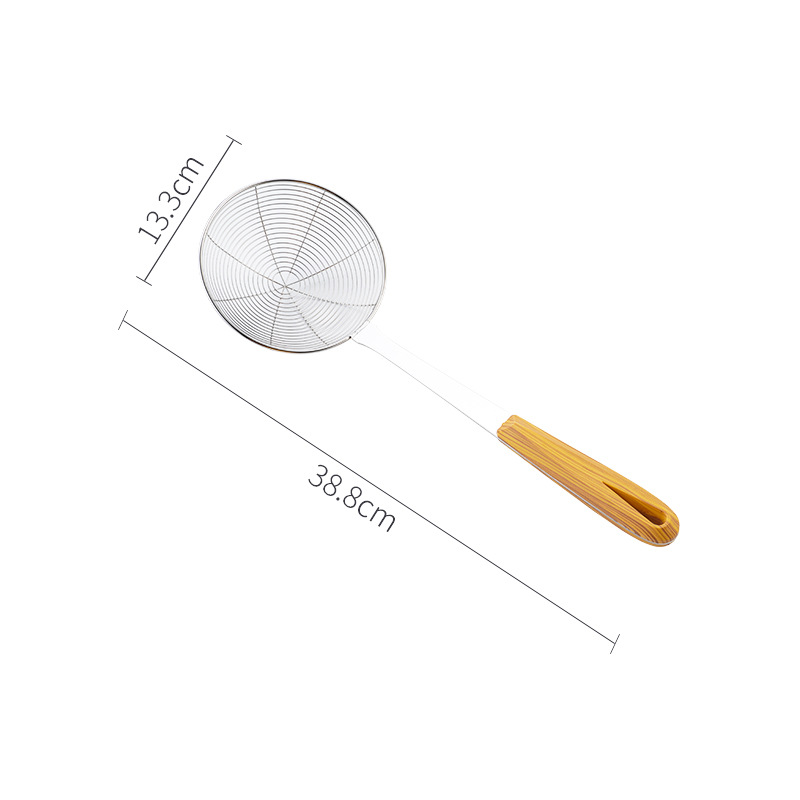 공장 도매 스테인레스 스틸 와이어 누출 가정용 주방 튀김 식품 필터 호텔 레스토랑 긴 나무 손잡이 냄비 와이어 누출스토어 가기