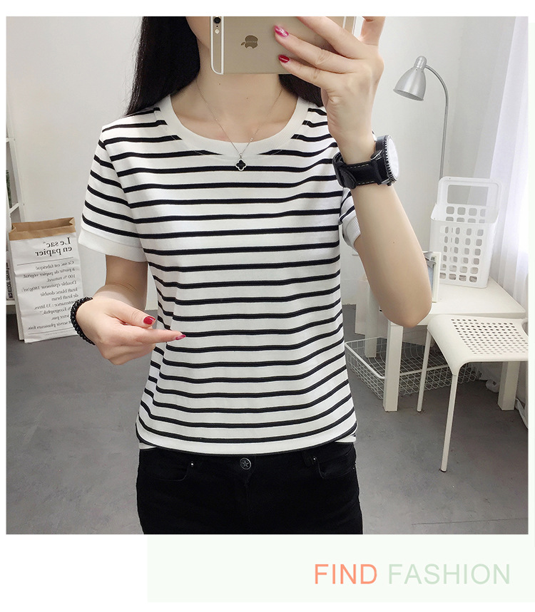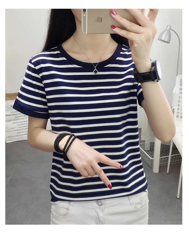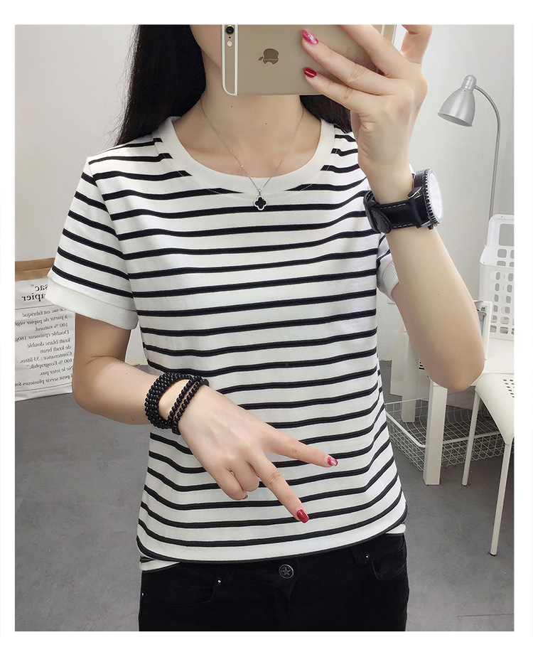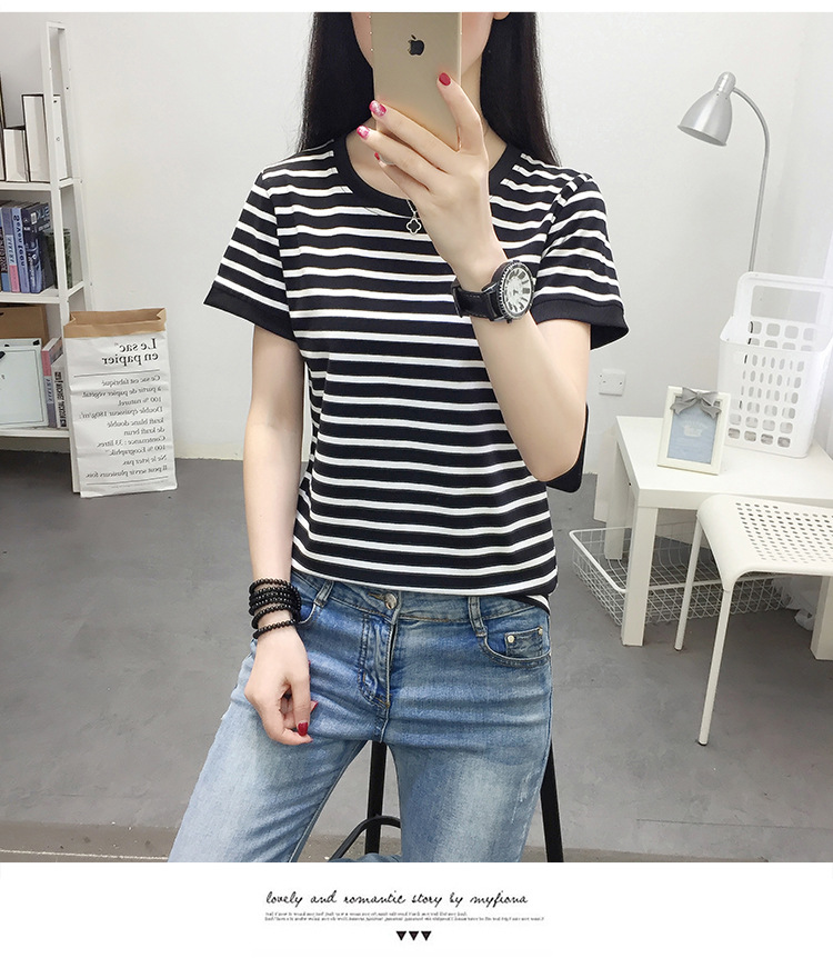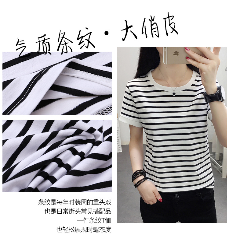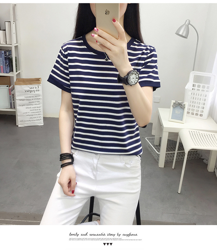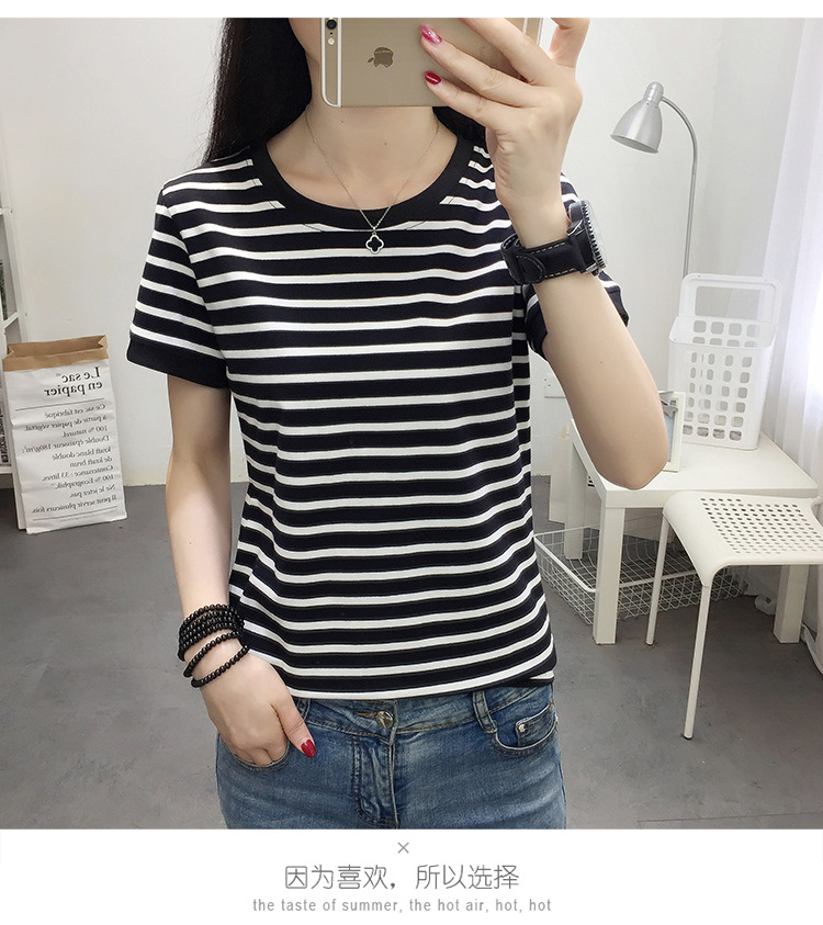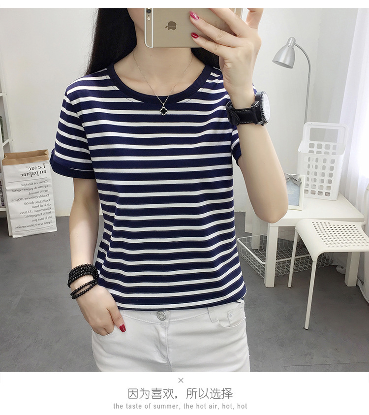 스트라이프 반팔 티셔츠 여성용 한국식 루즈한 인 트렌디 여름 2021 신상품 웨스턴 스타일 플러스 사이즈 여성용 탑 티셔츠스토어 가기
