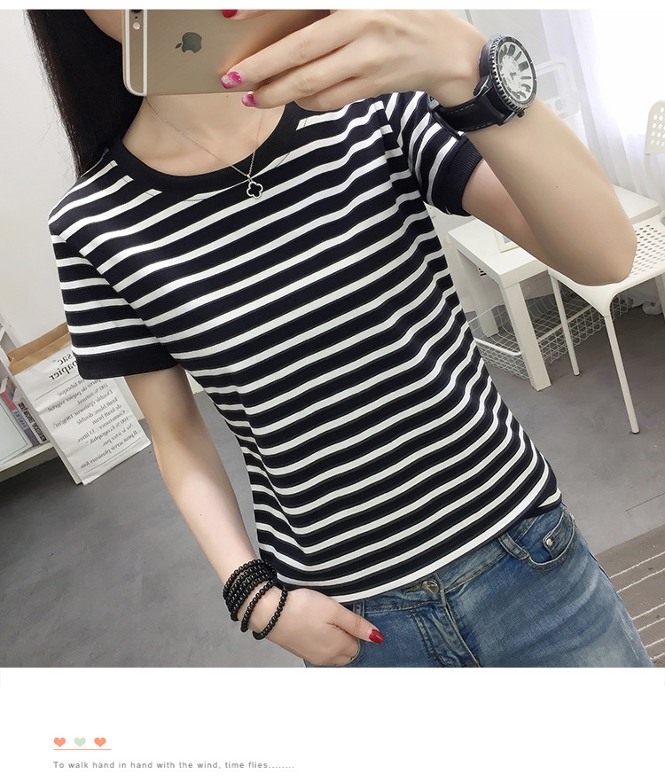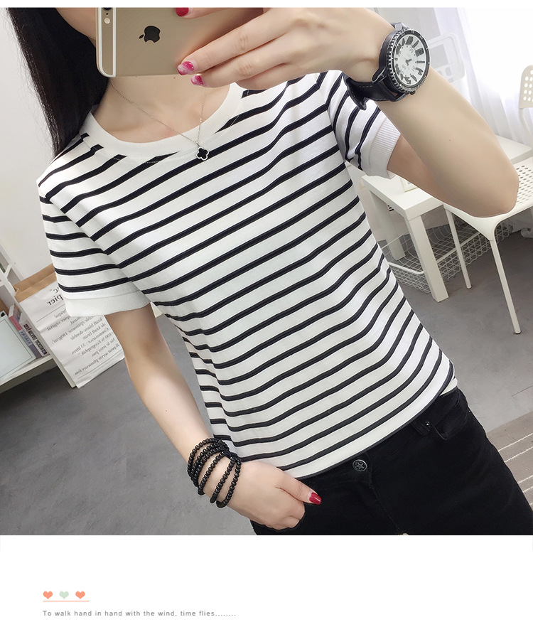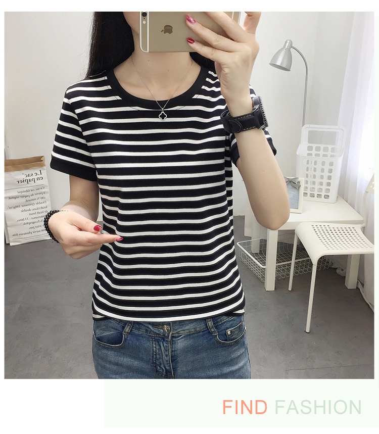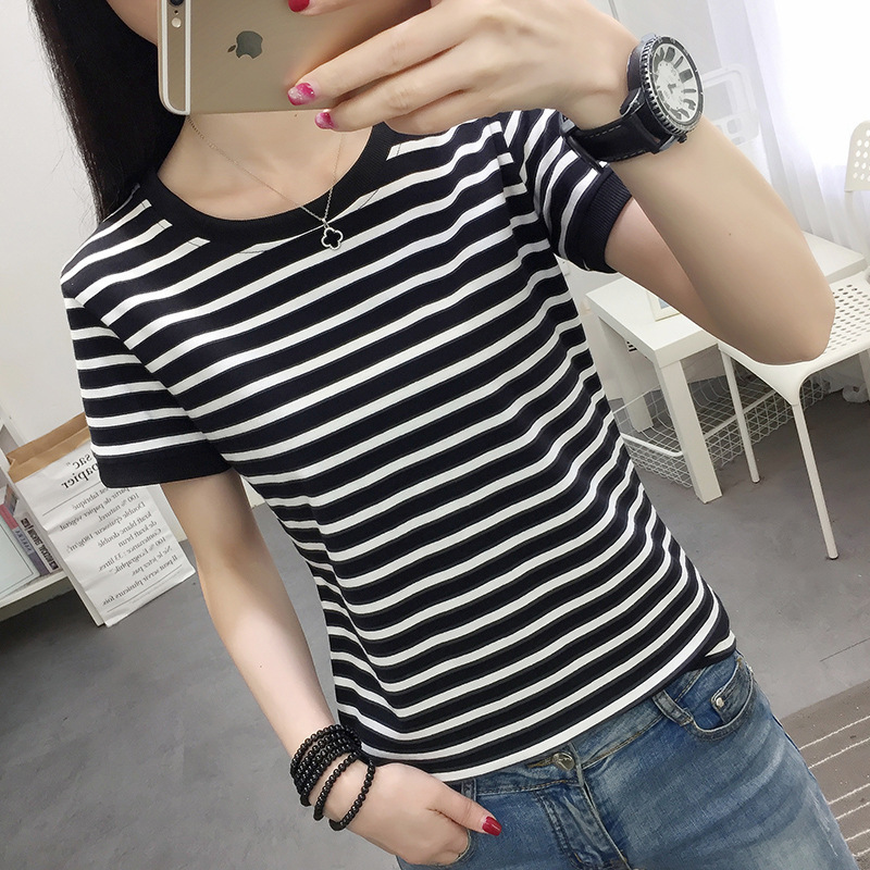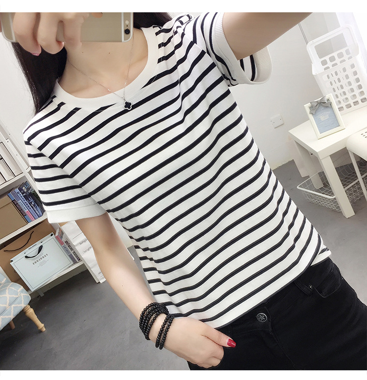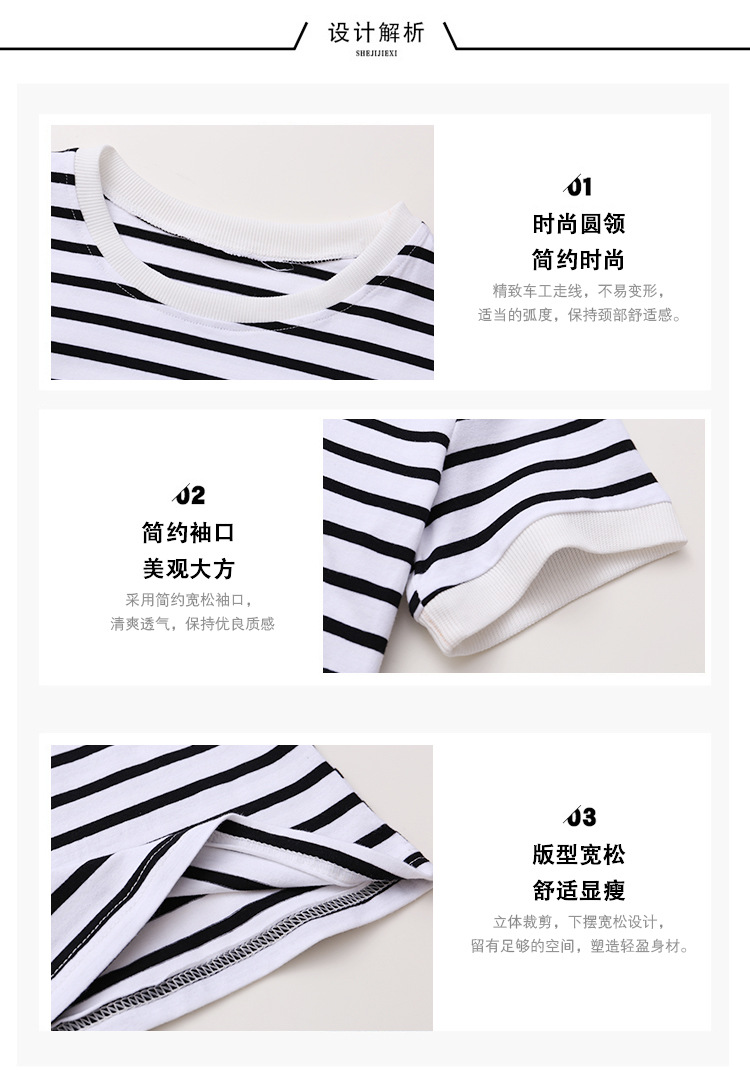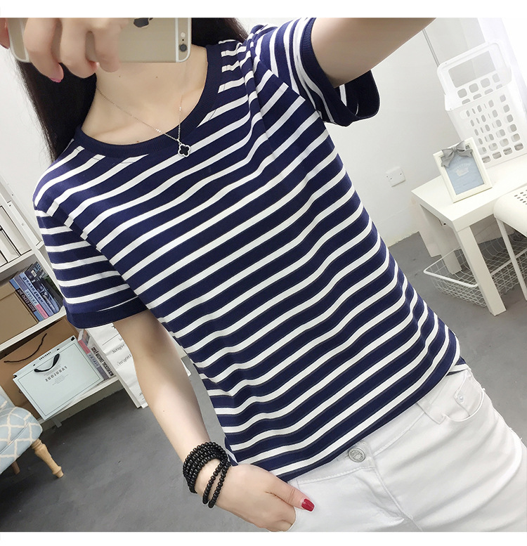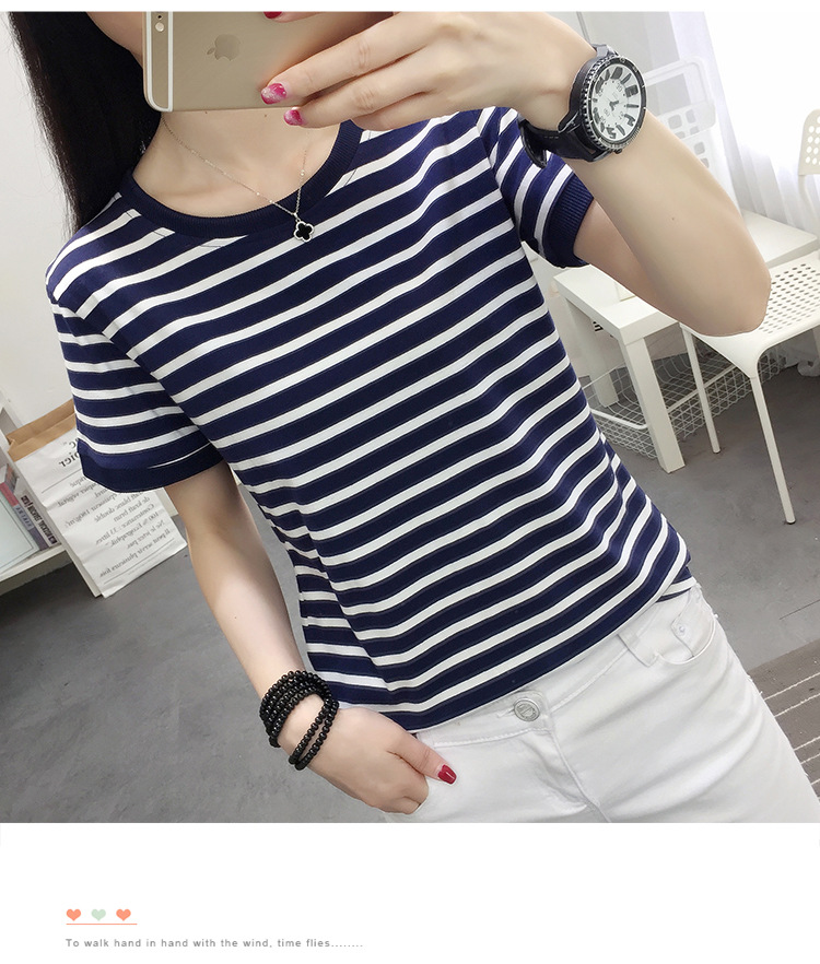 스트라이프 반팔 티셔츠 여성용 한국식 루즈한 인 트렌디 여름 2021 신상품 웨스턴 스타일 플러스 사이즈 여성용 탑 티셔츠스토어 가기