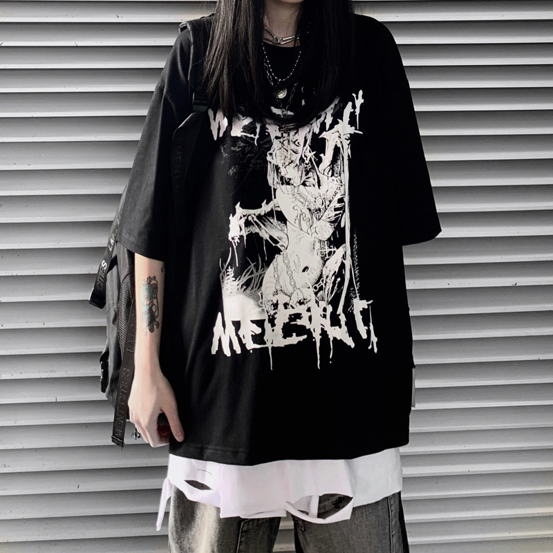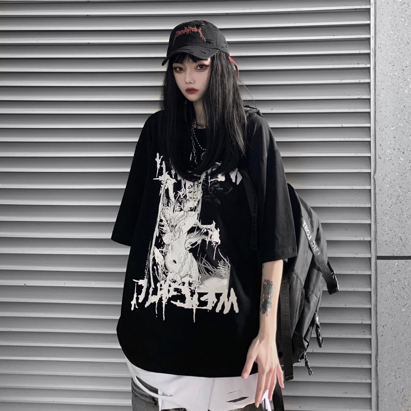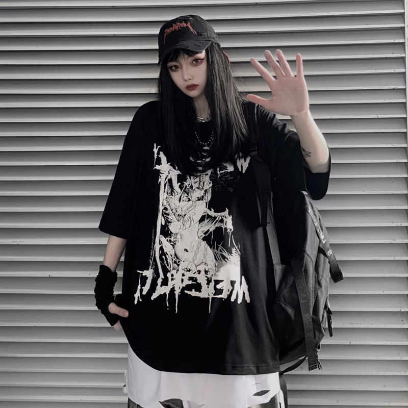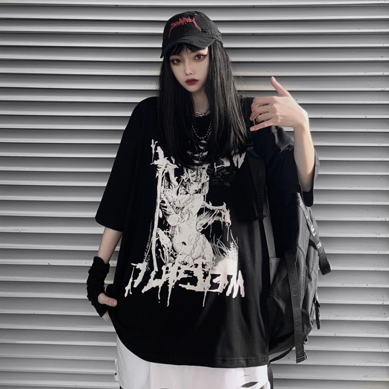 하라주쿠 스타일 애니메이션 반팔 티셔츠 여성용 여름 2021 새로운 디자인 센스 틈새 일본 스타일 루즈한 탑 옷스토어 가기