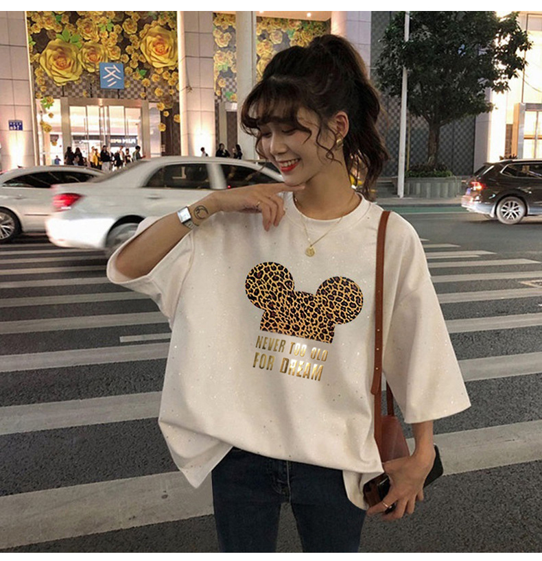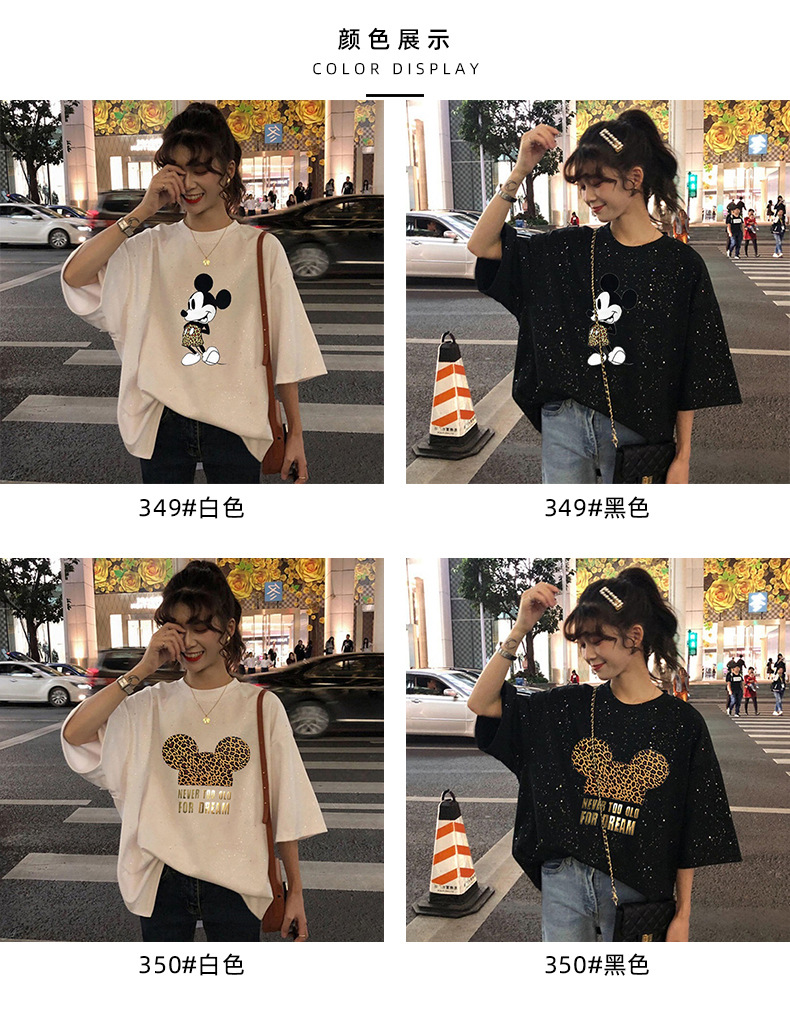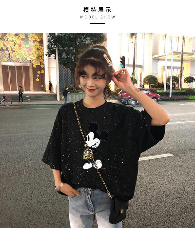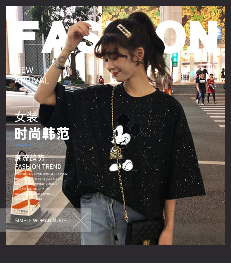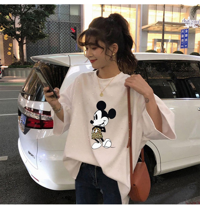 Didi 여성 의류 2021 미키 반팔 티셔츠 여성용 여름 인 트렌디 요소 홍콩 스타일 루즈한 한국식 힙합 여성 탑