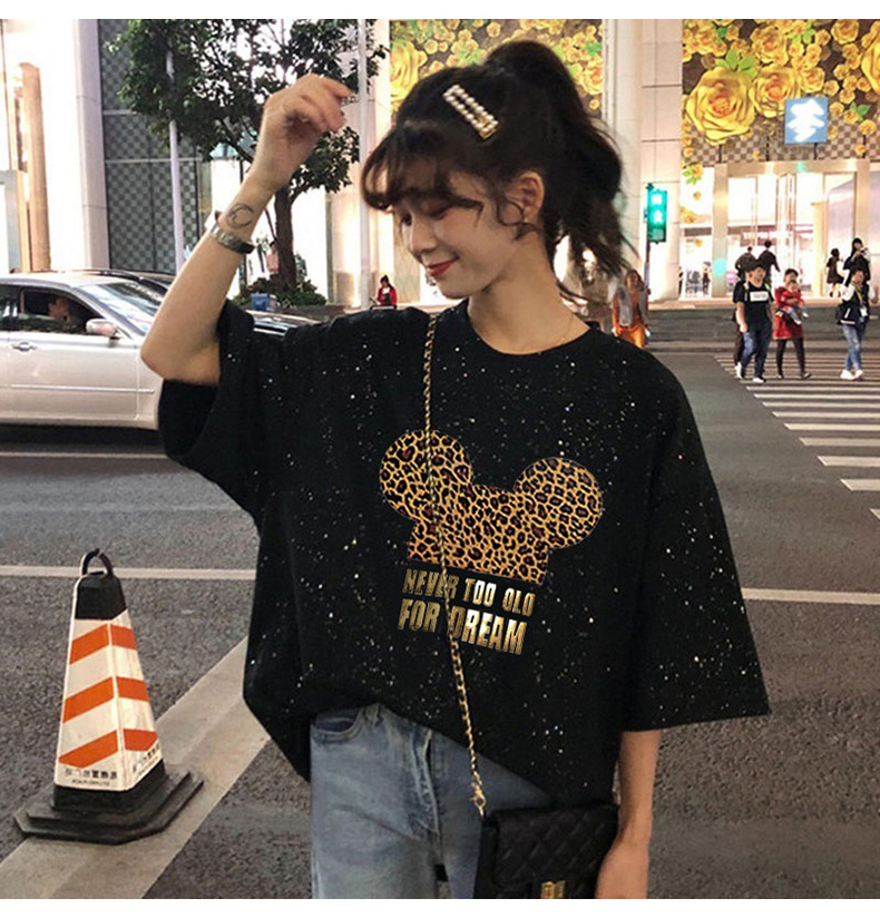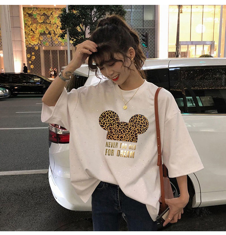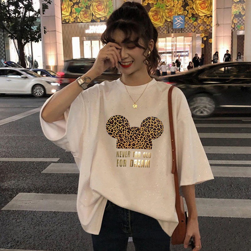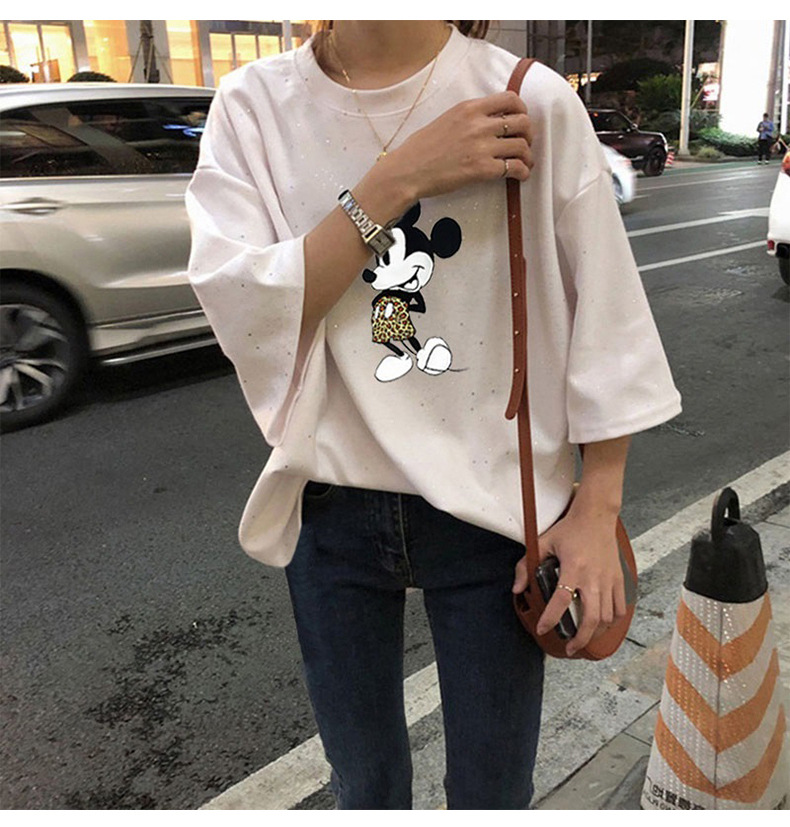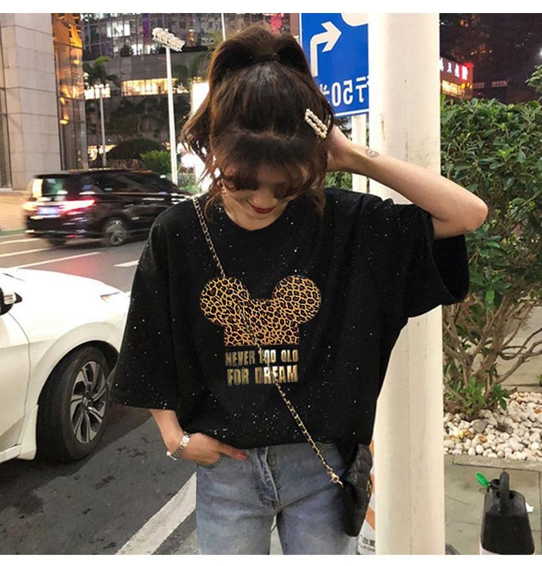 Didi 여성 의류 2021 미키 반팔 티셔츠 여성용 여름 인 트렌디 요소 홍콩 스타일 루즈한 한국식 힙합 여성 탑