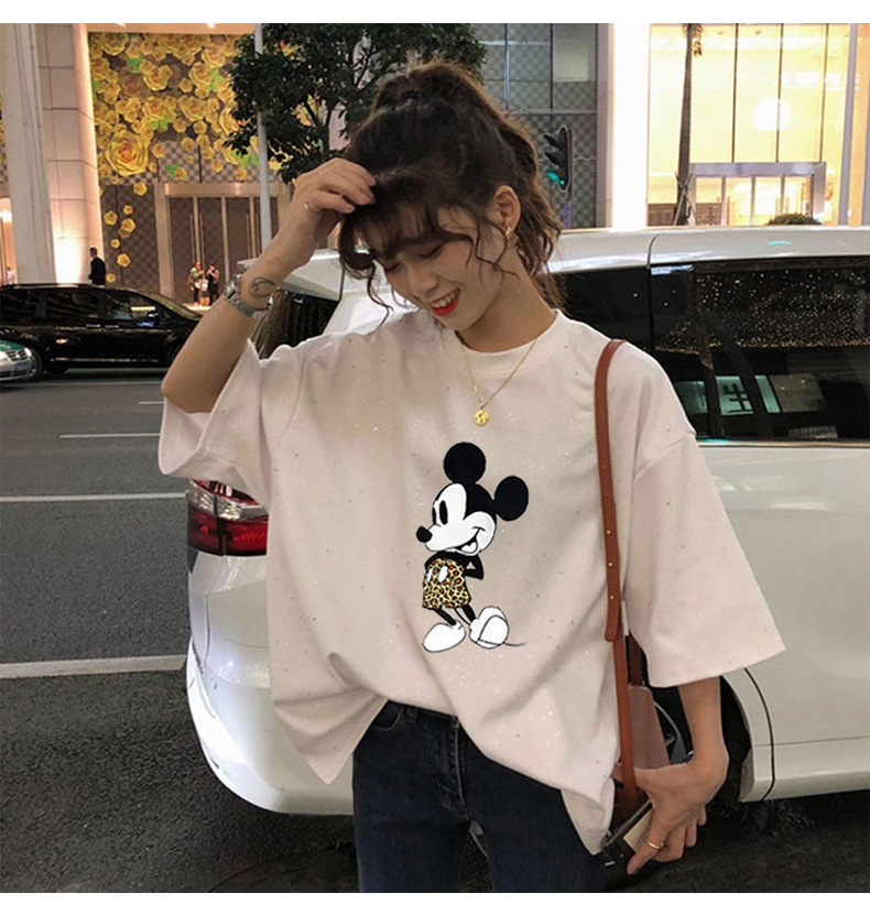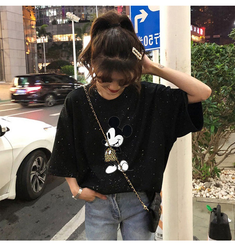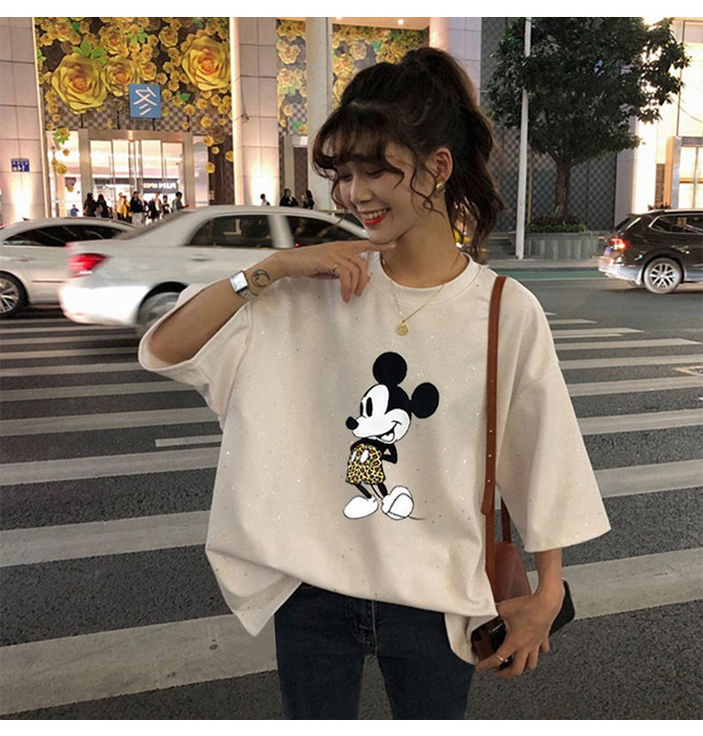 Didi 여성 의류 2021 미키 반팔 티셔츠 여성용 여름 인 트렌디 요소 홍콩 스타일 루즈한 한국식 힙합 여성 탑스토어 가기